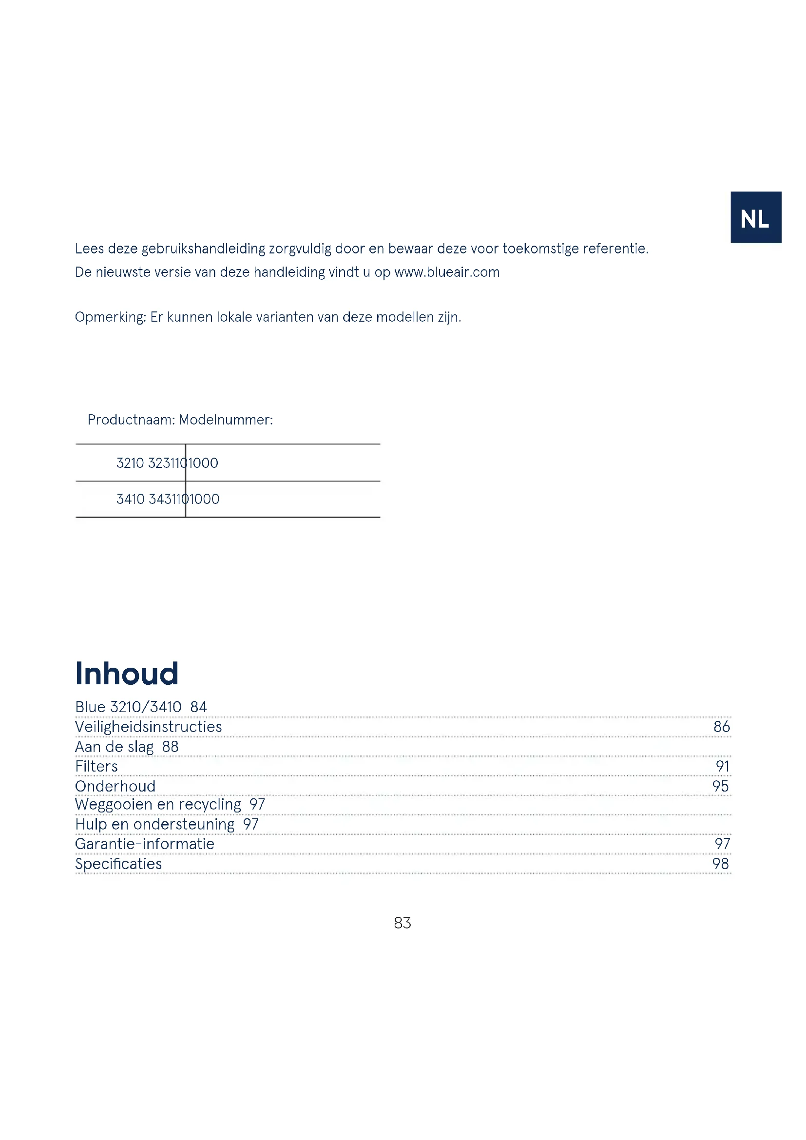 De neuewste versie van deze handleiding vindt u op www.blueair.com