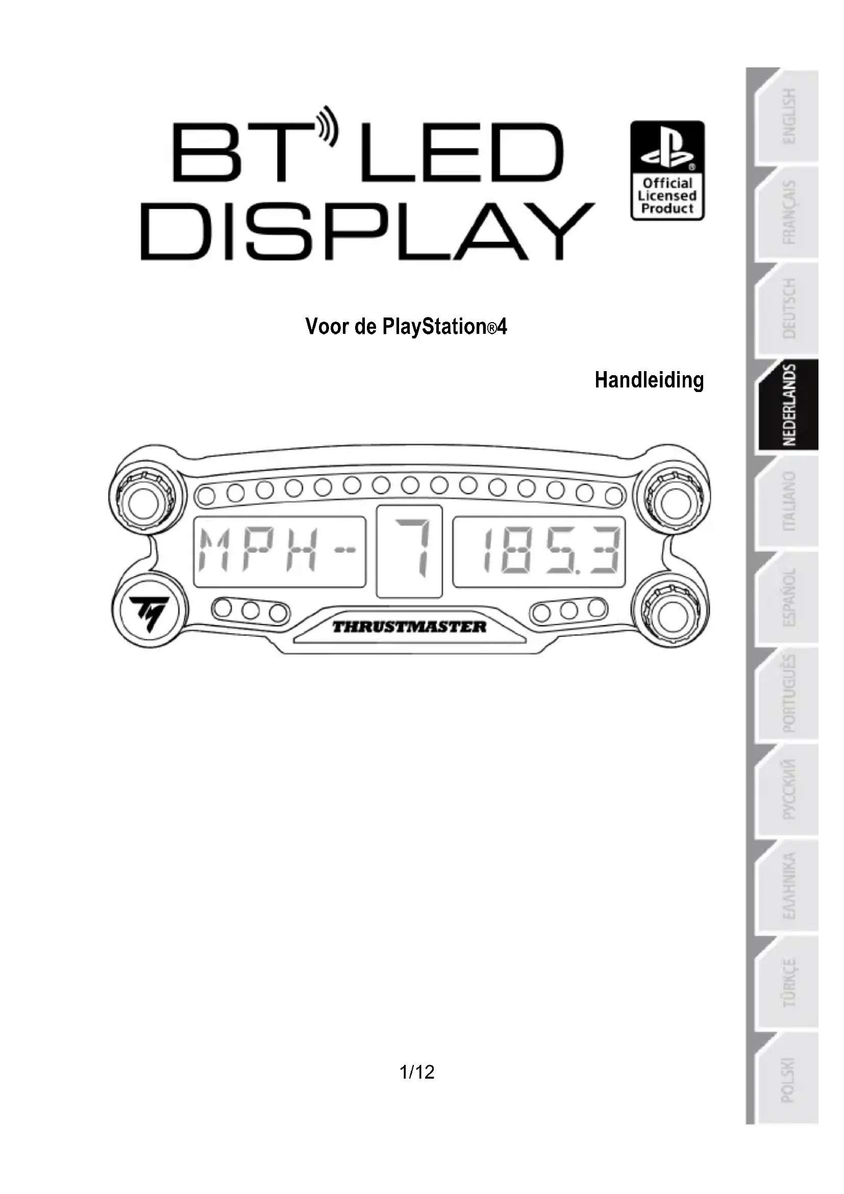 - Worden apart verkocht Ga voor meer informatie naar http://support.thrustmaster.com. Selecteer Racesturen / BT LED DISPLAY en vervolgens Handleiding of FAQ.9/12