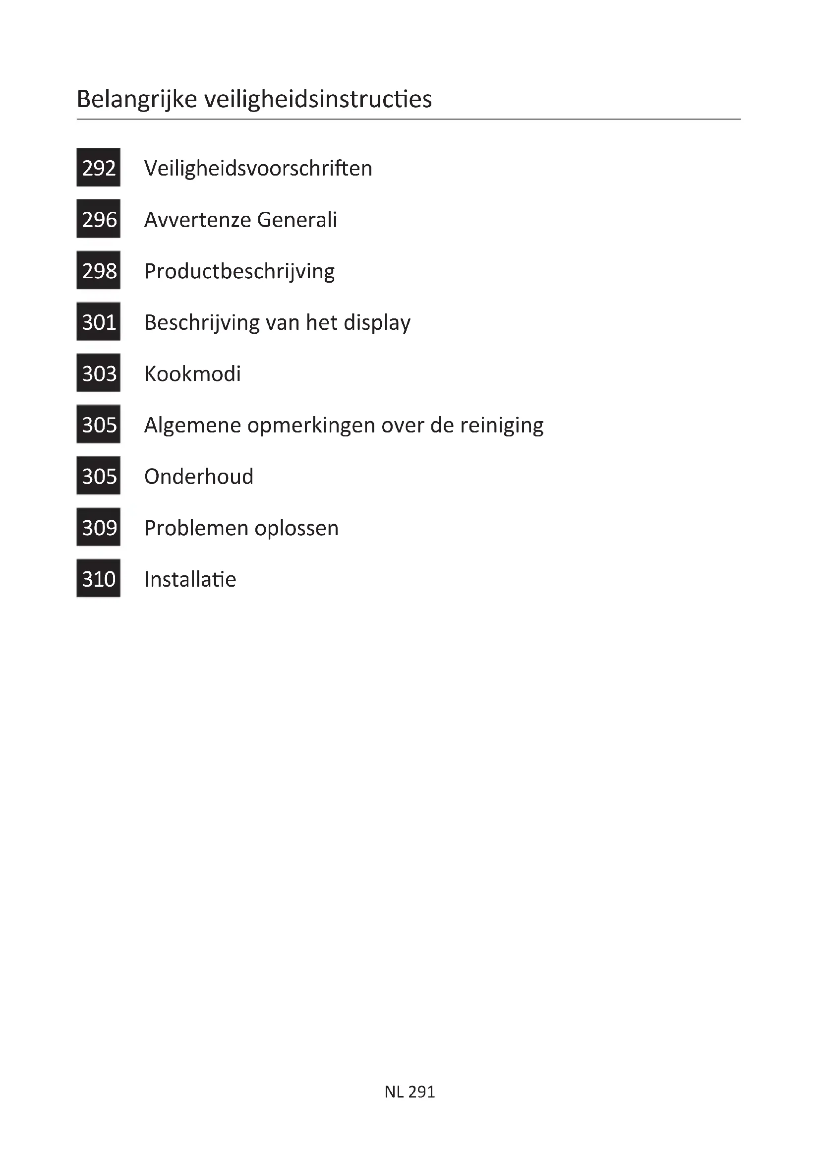 - Gebruik geen ruwe of schurende materialen of scherpe metalen VeiligheidsvoorschrienNL 293 schrapers om de glazen van de ovendeur schoon te maken, omdat deze krassen op het oppervlak kunnen veroorzaken en het glas kun- nen doen barsten.