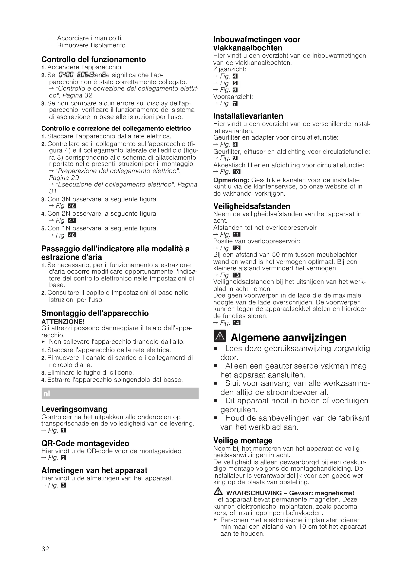 Algemene aanwijzingen ¡ Lees deze gebruiksaanwijzing zorgvuldig door. ¡ Alleen een geautoriseerde vakman mag het apparaat aansluiten. ¡ Sluit voor aanvang van alle werkzaamhe- den altijd de stroomtoevoer af. ¡ Dit apparaat nooit in boten of voertuigen gebruiken. ¡ Houd de aanbevelingen van de fabrikant van het werkblad aan. Veilige montage Neem bij het monteren van het apparaat de veilig- heidsaanwijzingen in acht. De veiligheid is alleen gewaarborgd bij een deskun- dige montage volgens de montagehandleiding. De installateur is verantwoordelijk voor een goede wer- king op de plaats van opstelling. WAARSCHUWING‒Gevaar: magnetisme! Het apparaat bevat permanente magneten. Deze kunnen elektronische implantaten, zoals pacema- kers, of insulinepompen beïnvloeden.