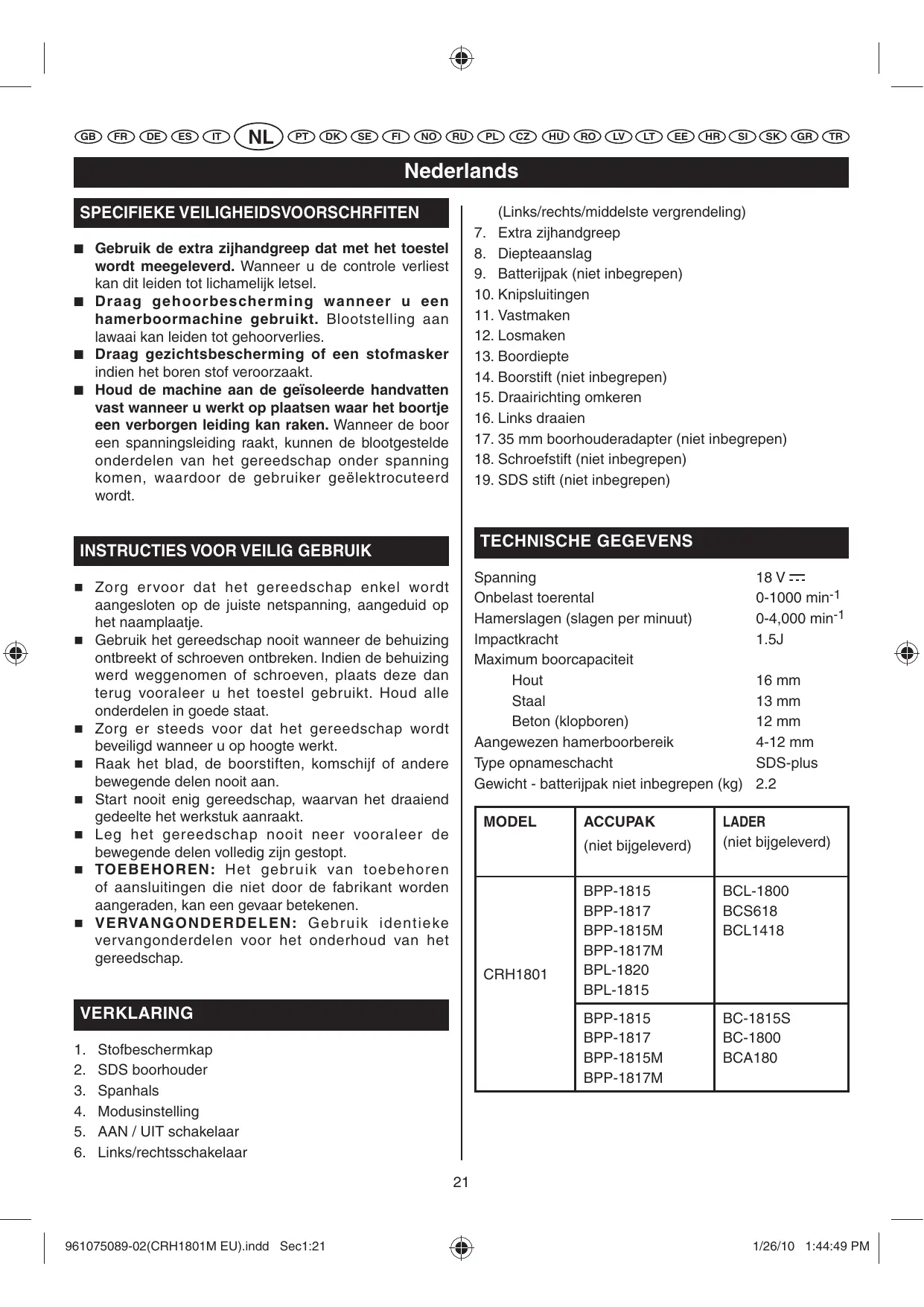 GEBRUIKSAANWIJZING CRH1801 RYOBI