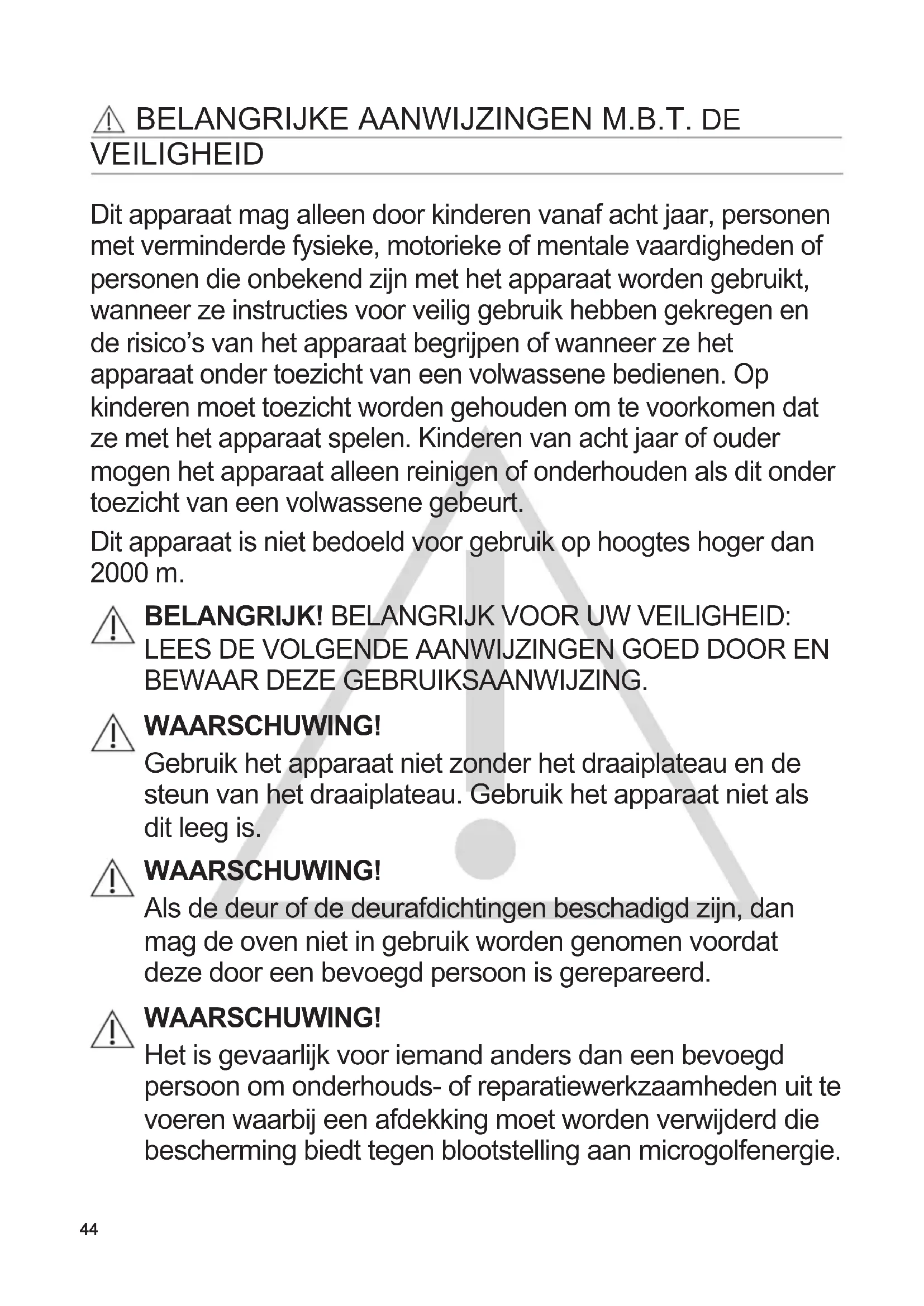 1. Belangrijke aanwijzingen m.B.t. de veiligheid...................................................44