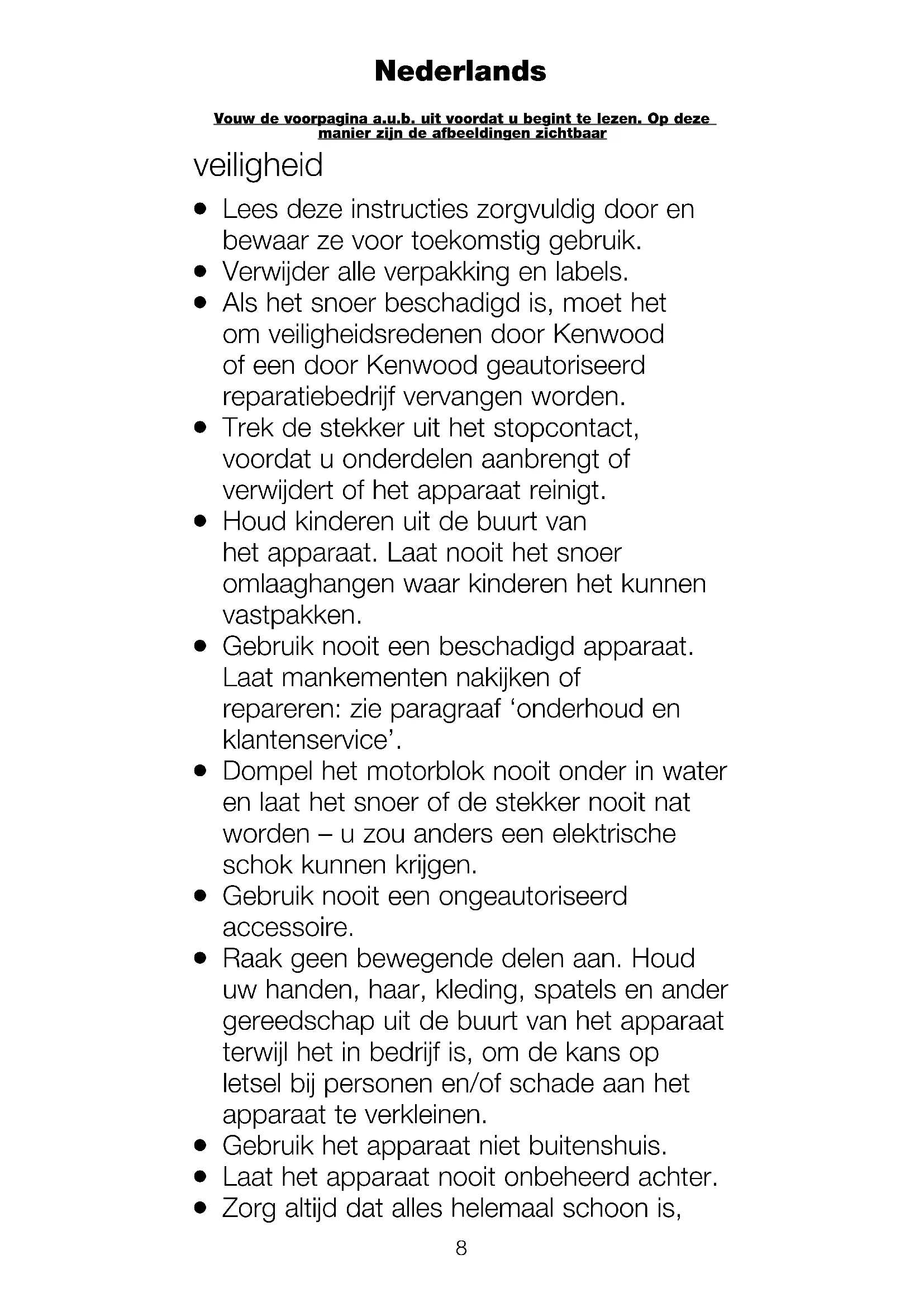 Gebruik het apparaat alleen voor het huishoudelijke gebruik waarvoor het is bedoeld. Kenwood kan niet aansprakelijk worden gesteld in als het apparaat is misbruikt of als deze instructies niet zijn opgevolgd.