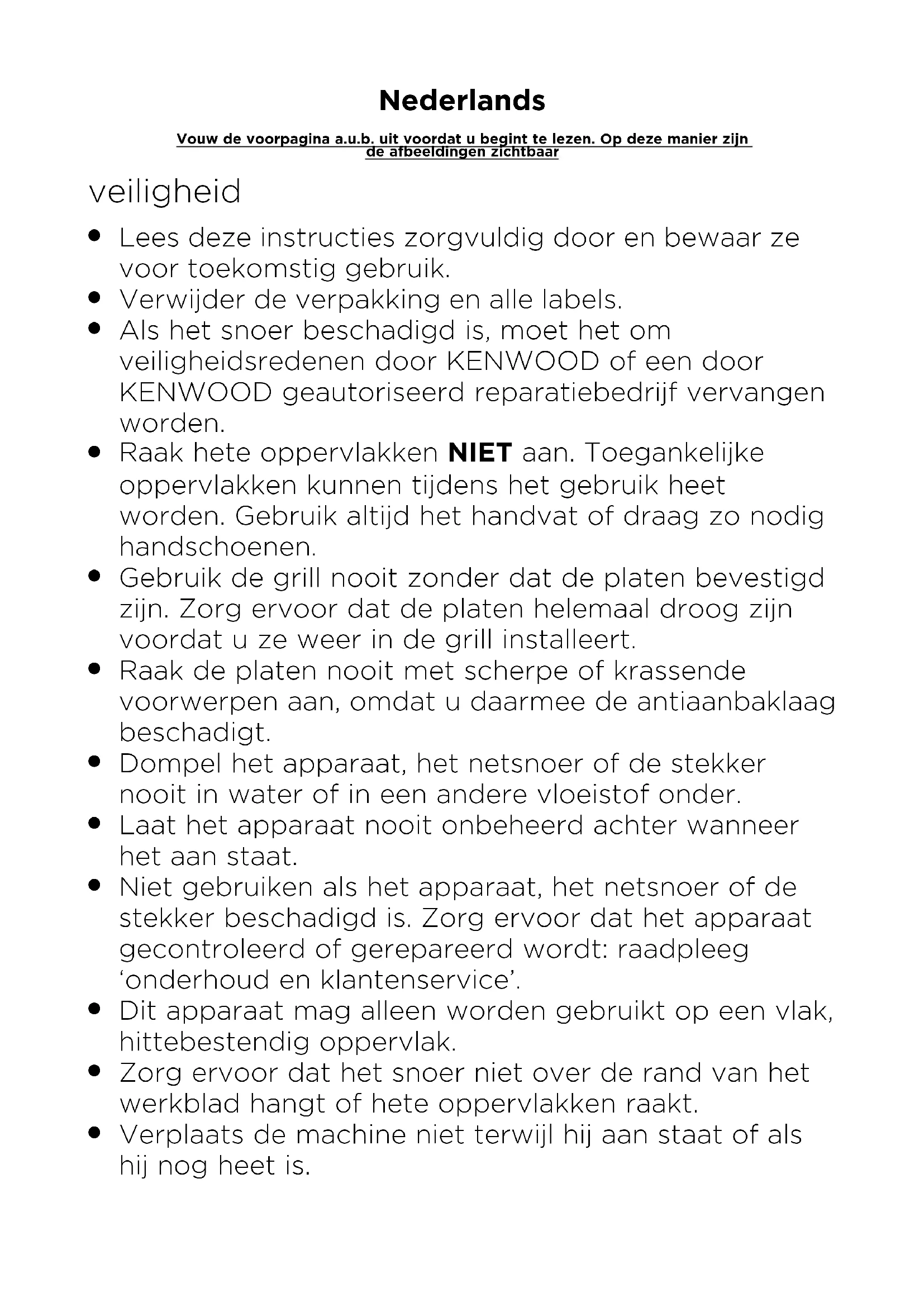 Verplaats de machine niet terwijl hij aan staat of als hij nog heet is. Nederlands Vouw de voorpagina a.u.b. uit voordat u begint te lezen. Op deze manier zijn de afbeeldingen zichtbaar9