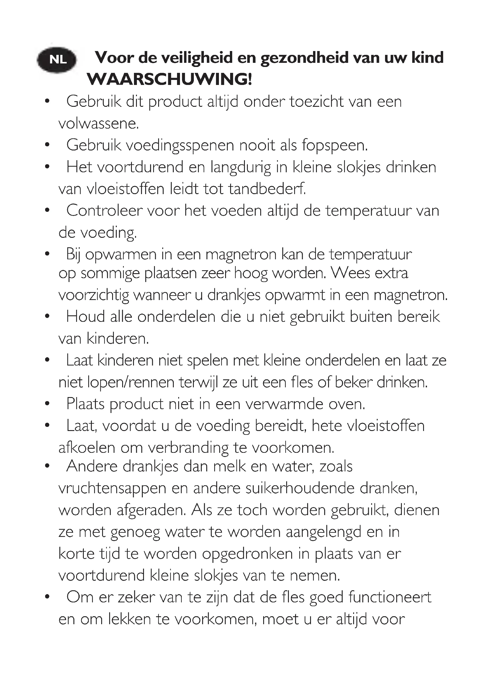 - Controleer voor het voeden altijd de temperatuur van de voeding.