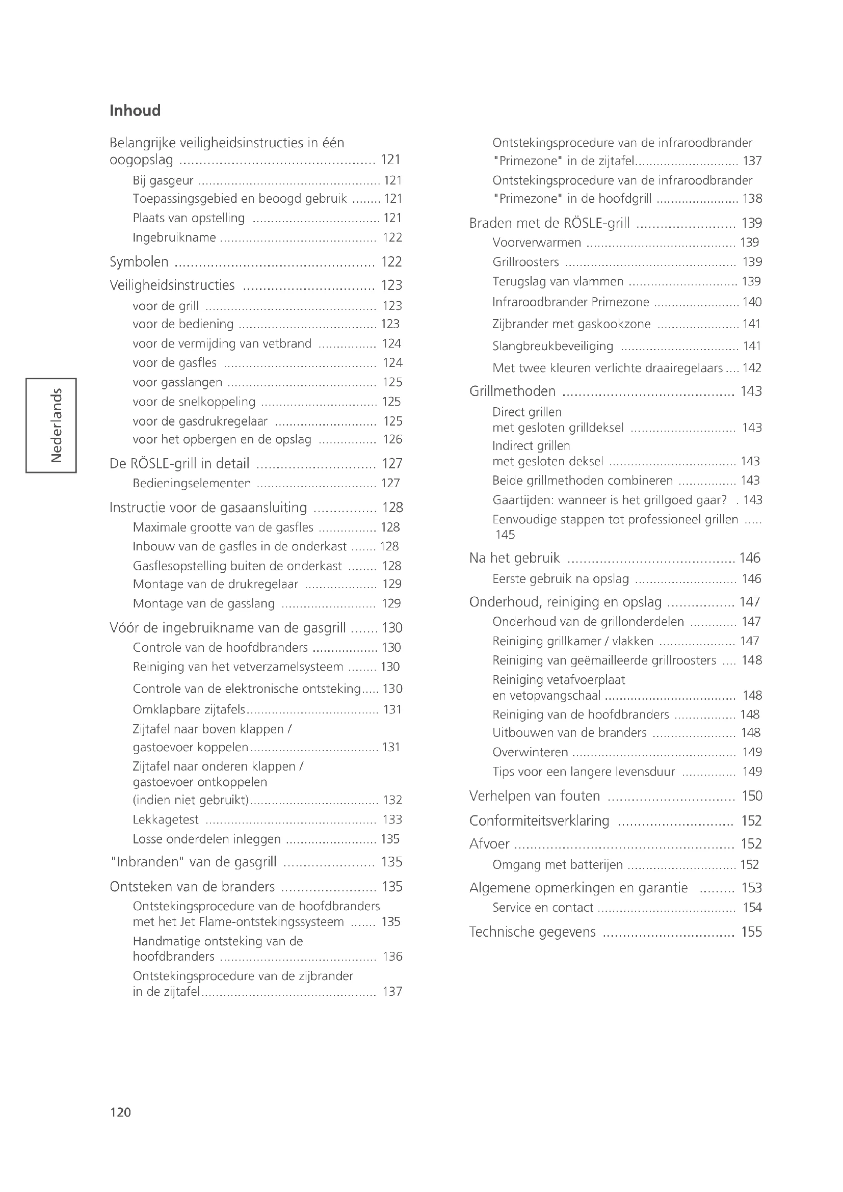 - Vóór de ingebruikname van de gasgrill p. 130