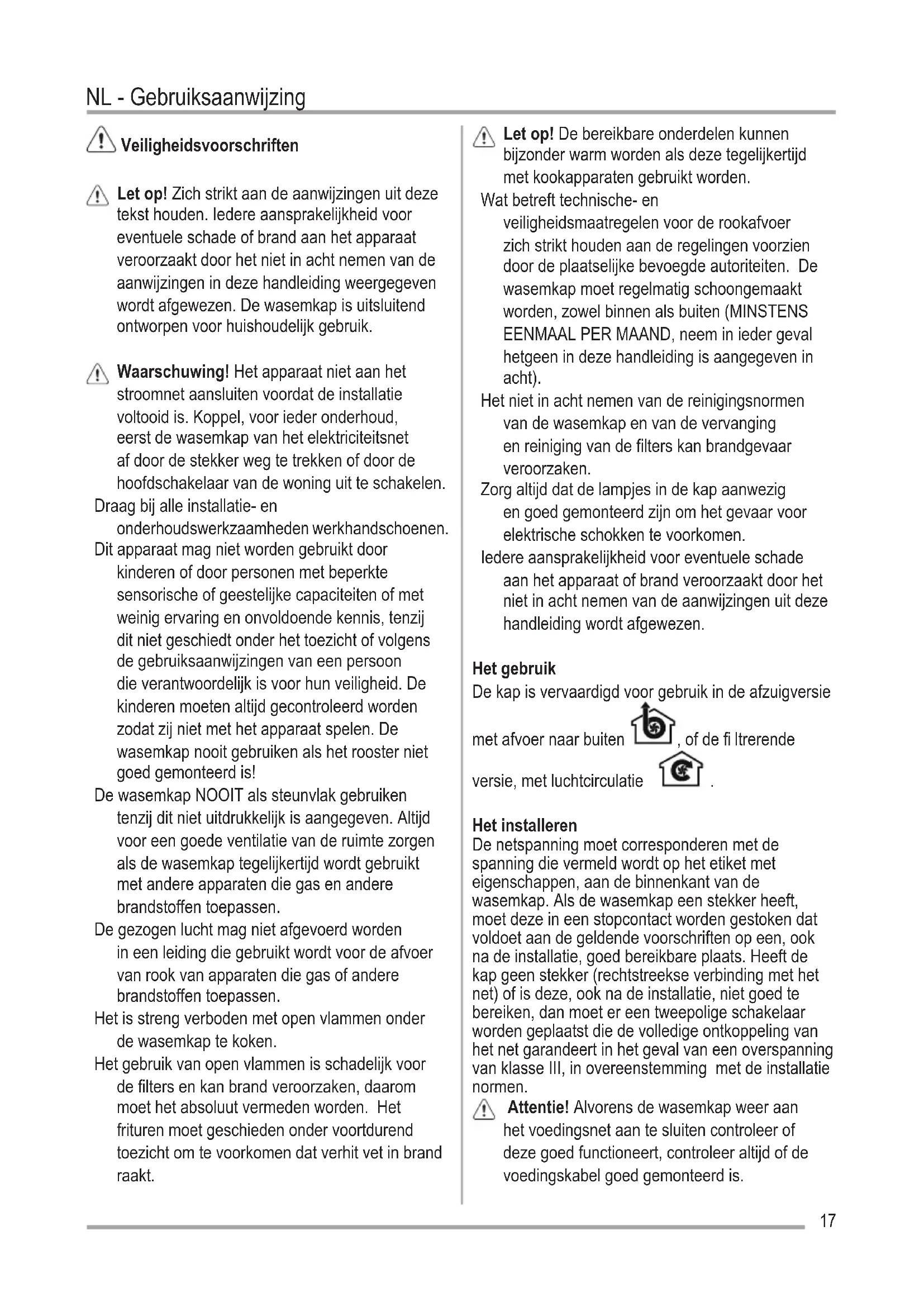 Afzuigkap Gebruiksaanwijzing 17