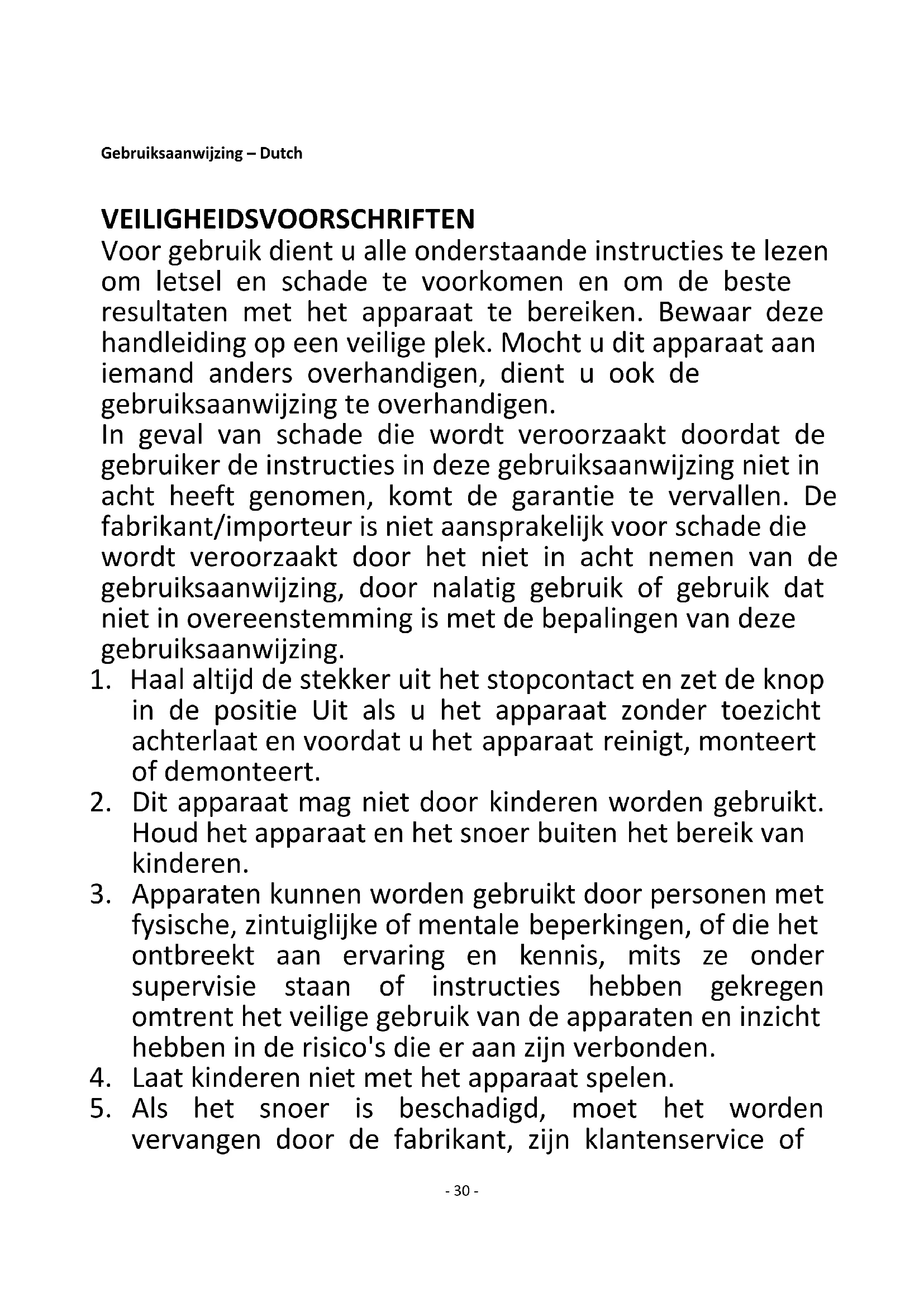 5. Als het snoer is beschadigd, moet het worden