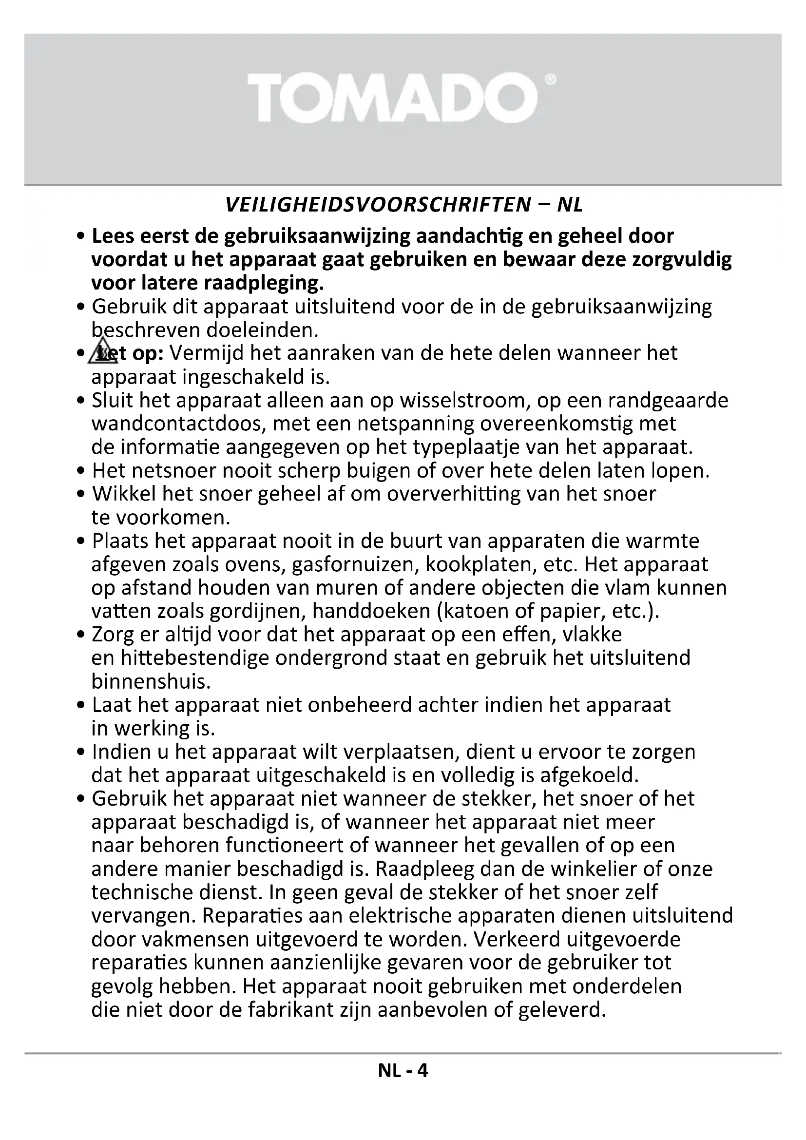 GEBRUIKSAANWIJZING TEH2001B Tomado