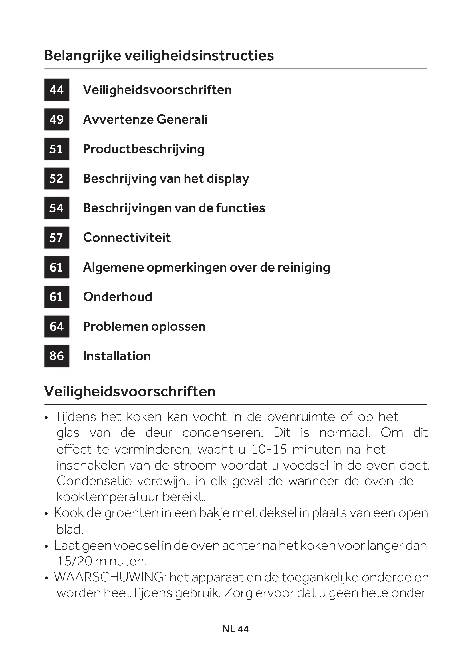 - WAARSCHUWING: Bekleed de ovenruimte niet met aluminiumfolie of wegwerpbeschermingen die verkrijgbaar zijn in de hanNL 48