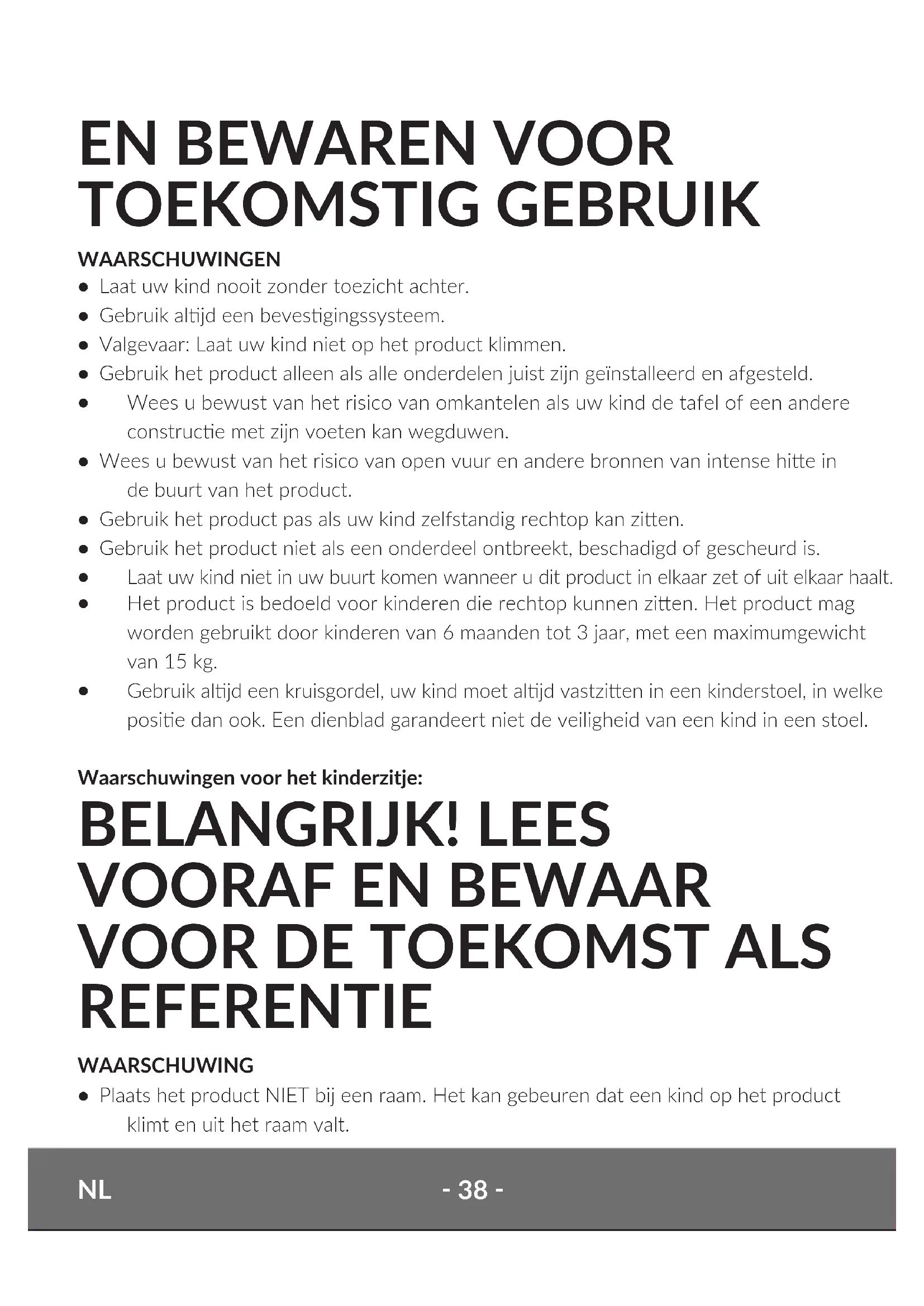 - Gebruik het product pas als uw kind zelfstandig rechtop kan zien.
