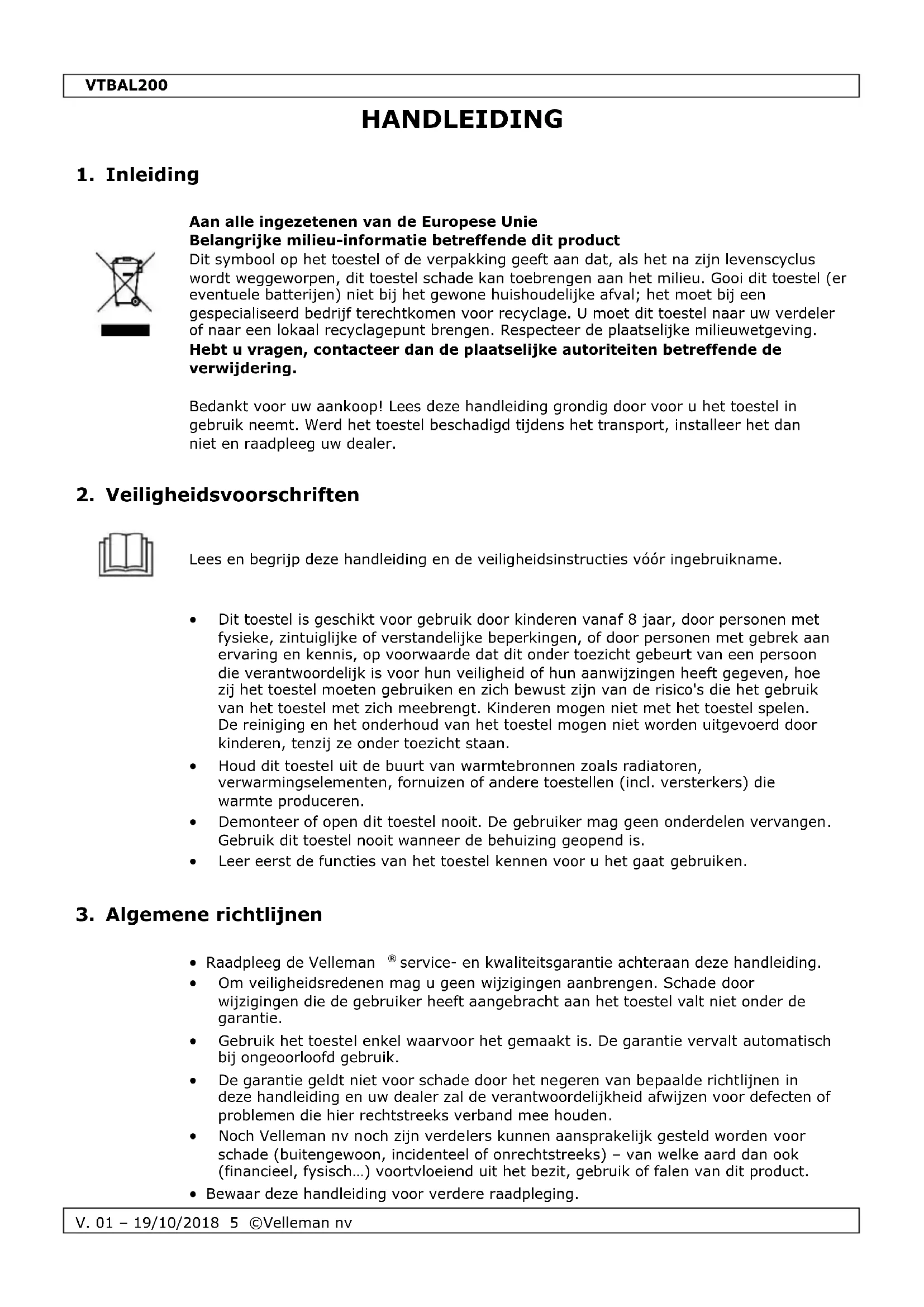V. 01 – 19/10/2018 7 ©Velleman nv