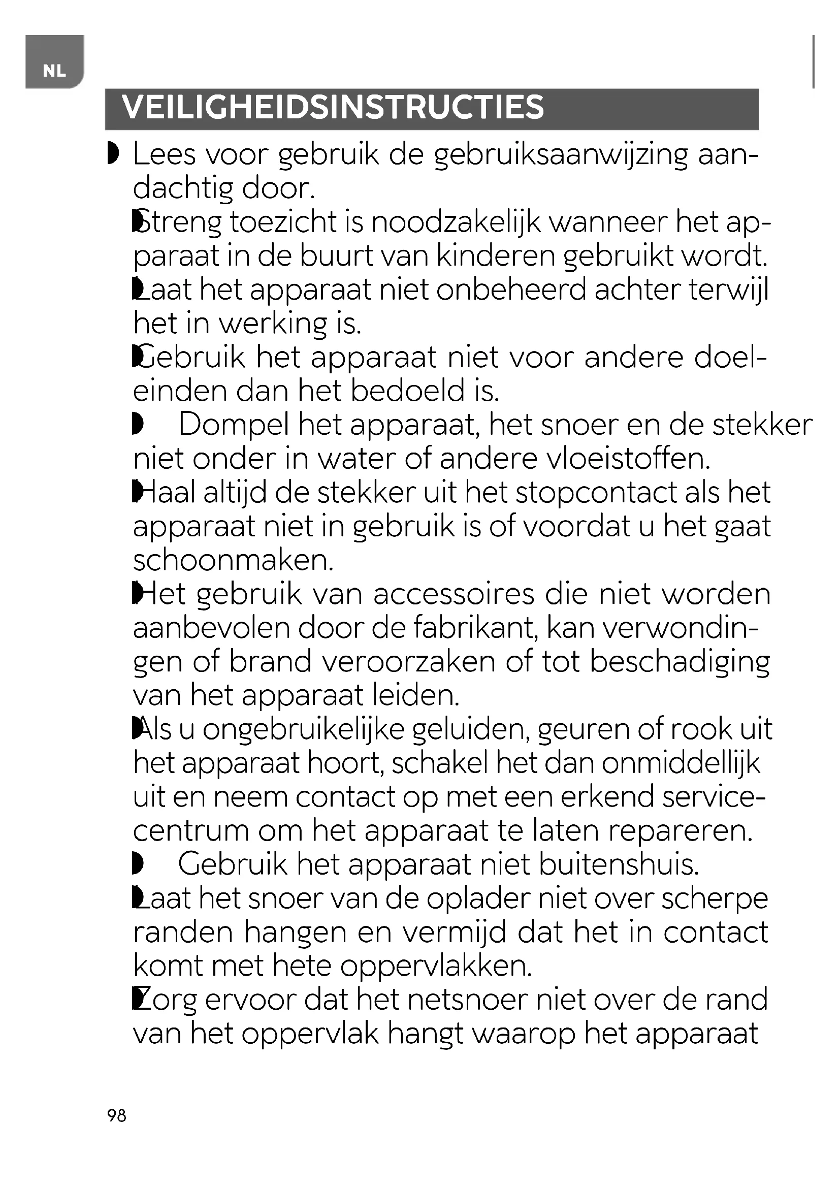 VEILIGHEIDSINSTRUCTIES Lees voor gebruik de gebruiksaanwijzing aan- dachtig door.