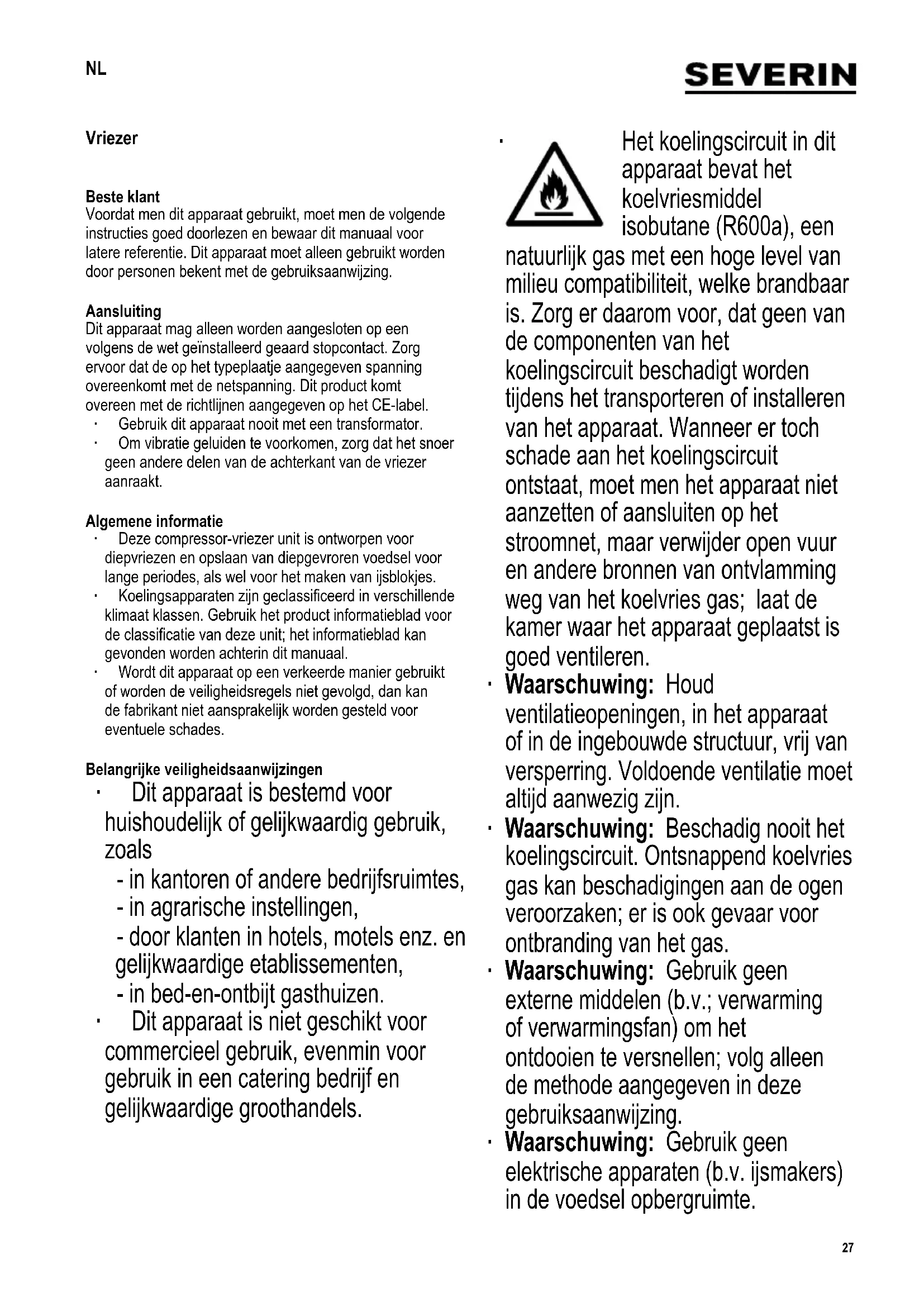 GB 8883 - Vriezer SEVERIN - Gratis gebruiksaanwijzing en handleiding