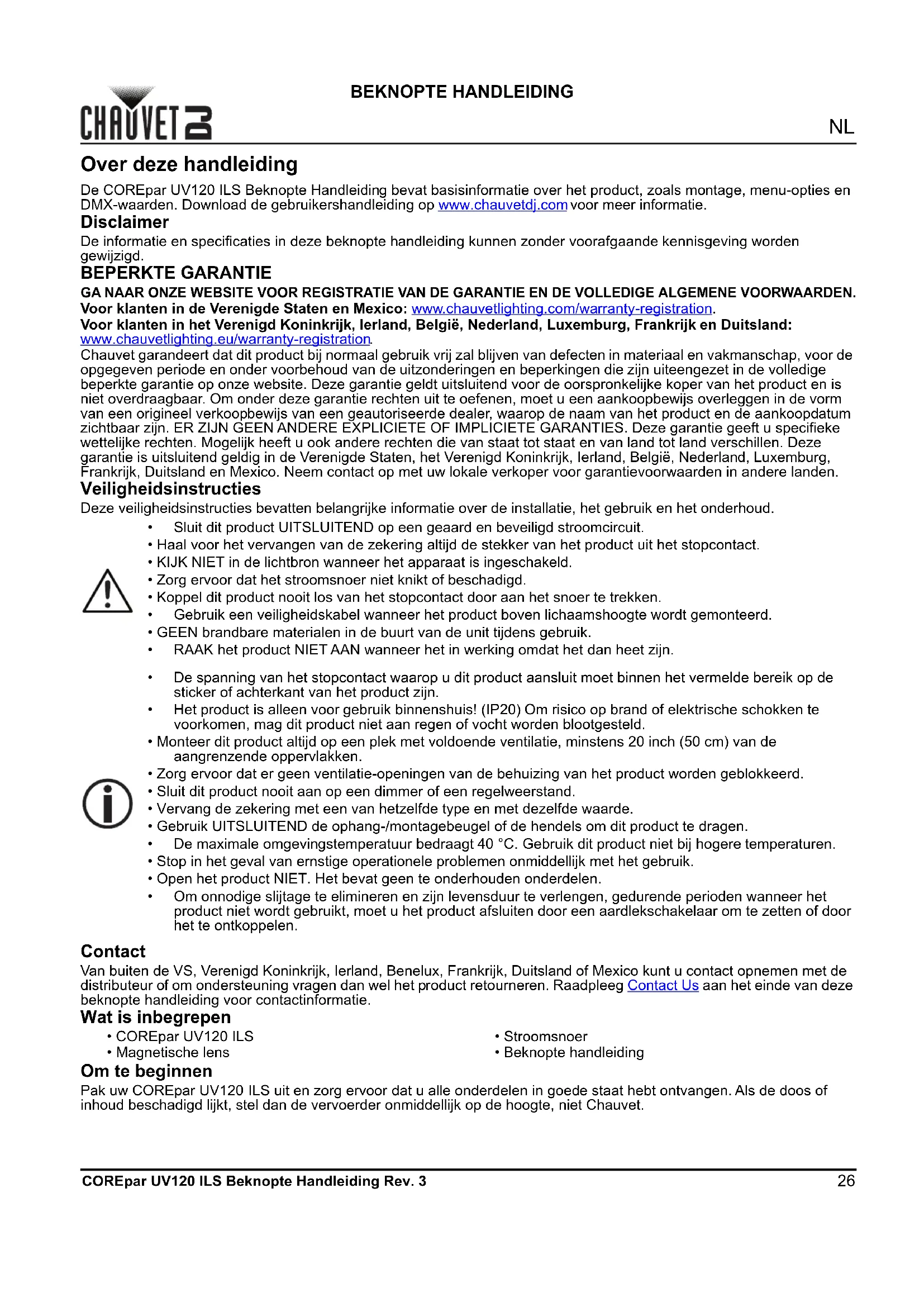 Vind de handleiding van het apparaat gratis COREpar UV 120 ILS Chauvet in PDF-formaat.