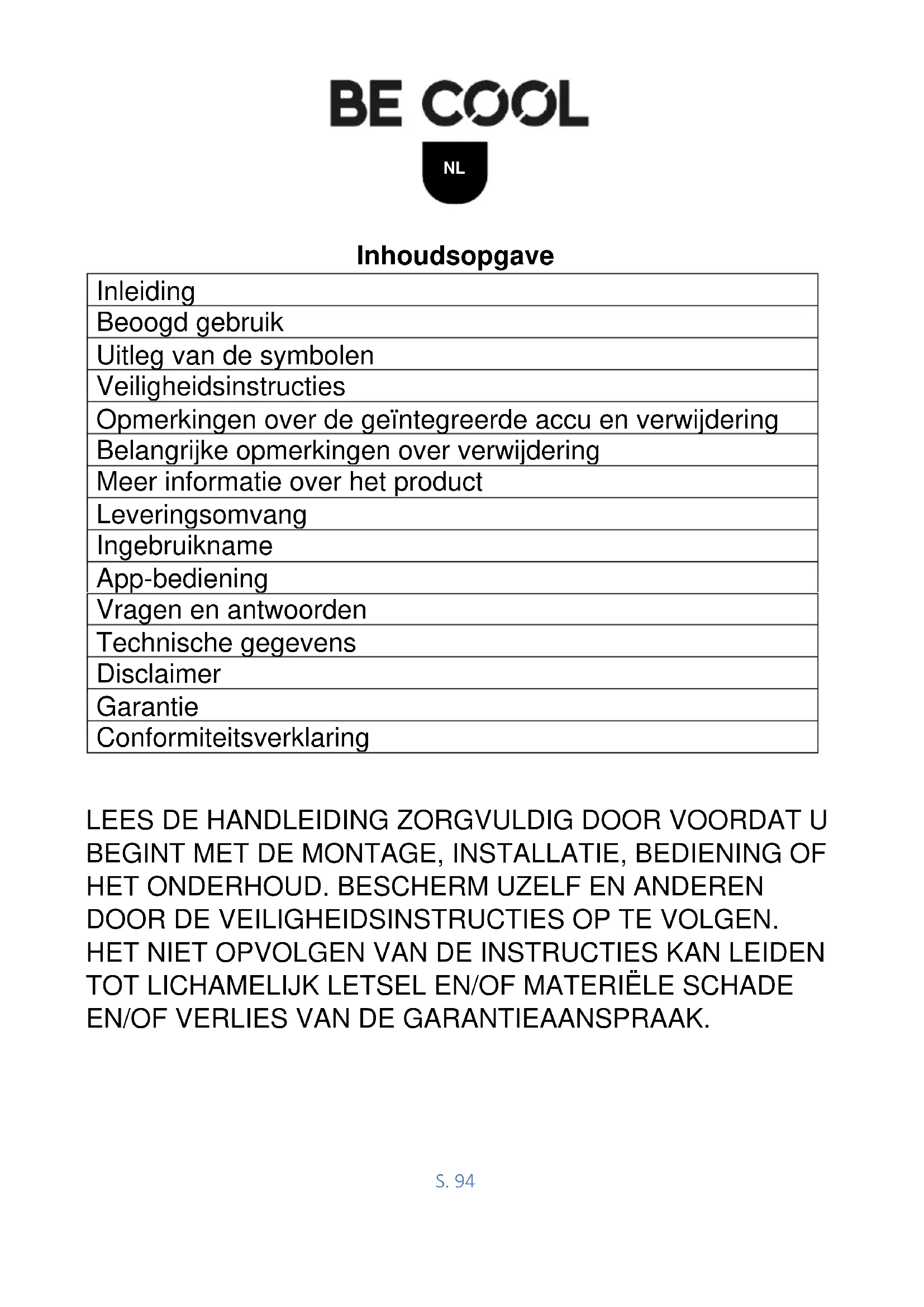 Met dit kwaliteitsproduct van BE COOL hebt u gekozen voor innovatie, duurzaamheid en betrouwbaarheid.