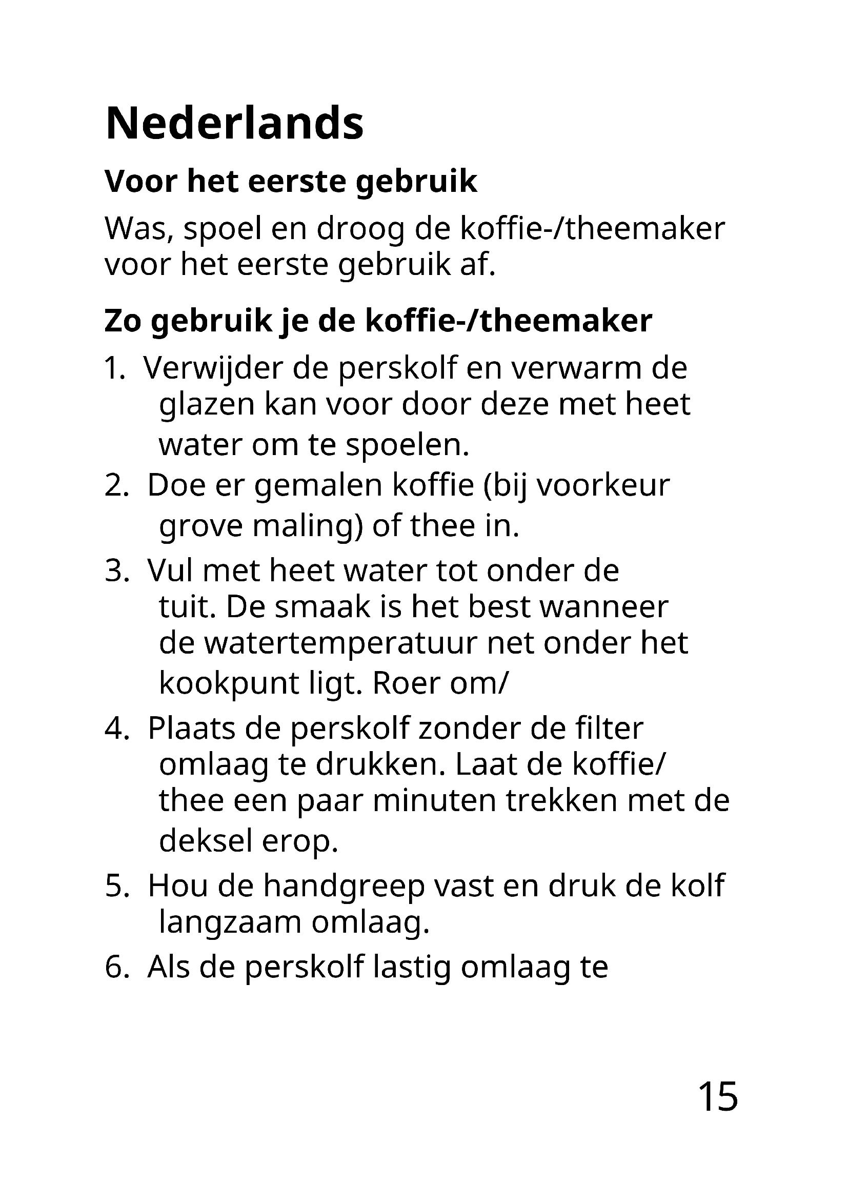 omlaag te drukken. Laat de koe/ thee een paar minuten trekken met de deksel erop.