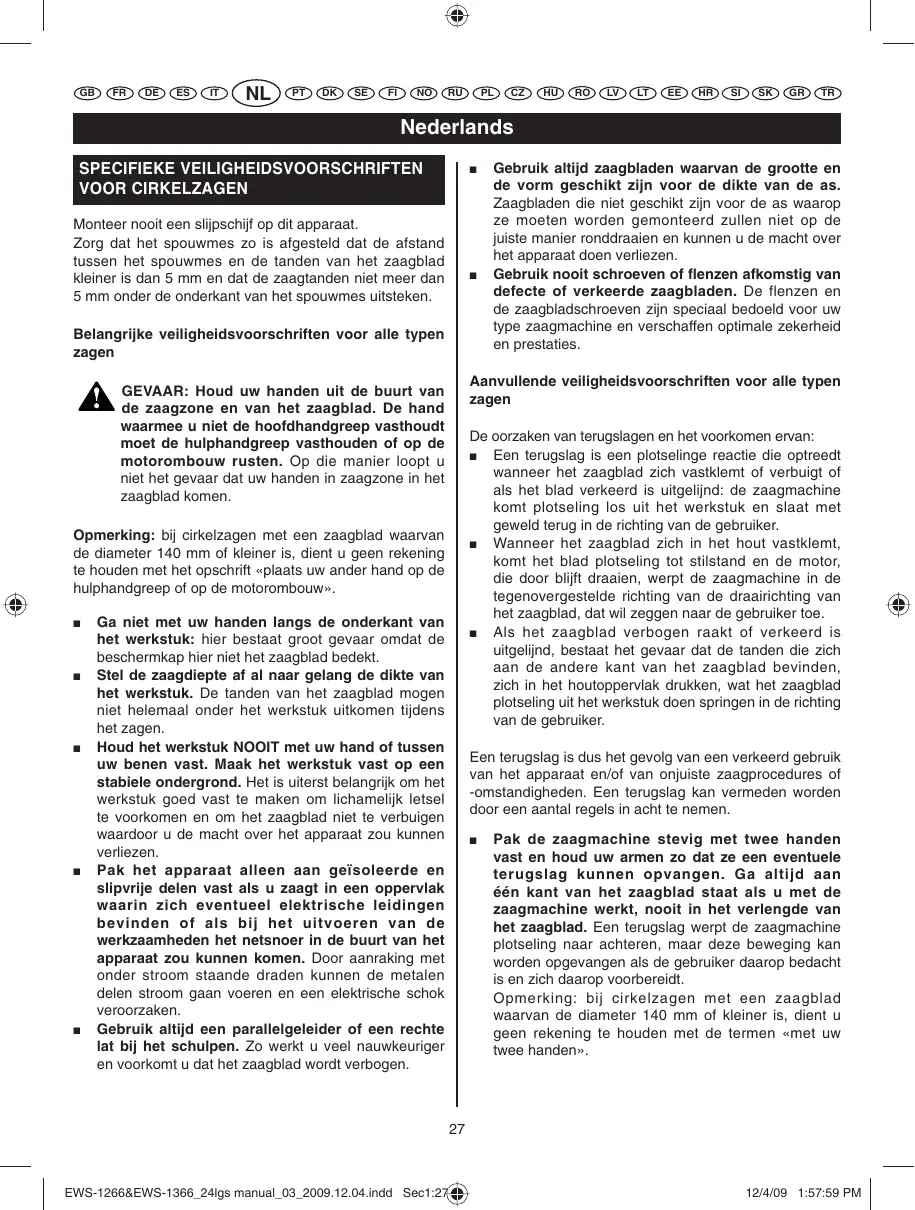 SPECIFIEKE VEILIGHEIDSVOORSCHRIFTEN VOOR CIRKELZAGEN