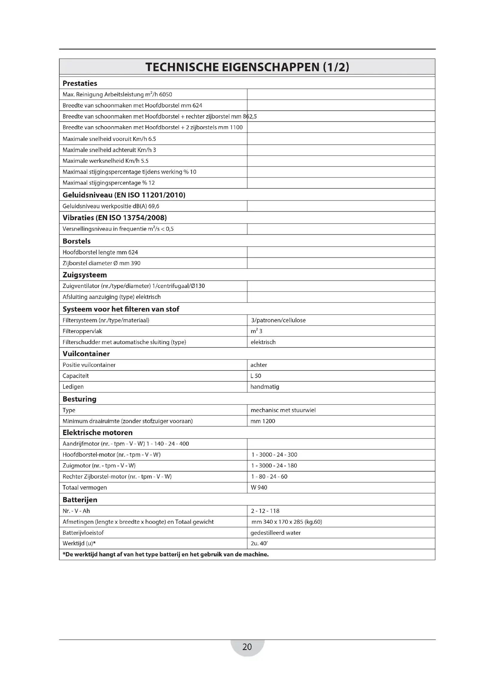 - De veegmachine mag alleen door bevoegd en vakbekwaam personeel gebruikt worden.