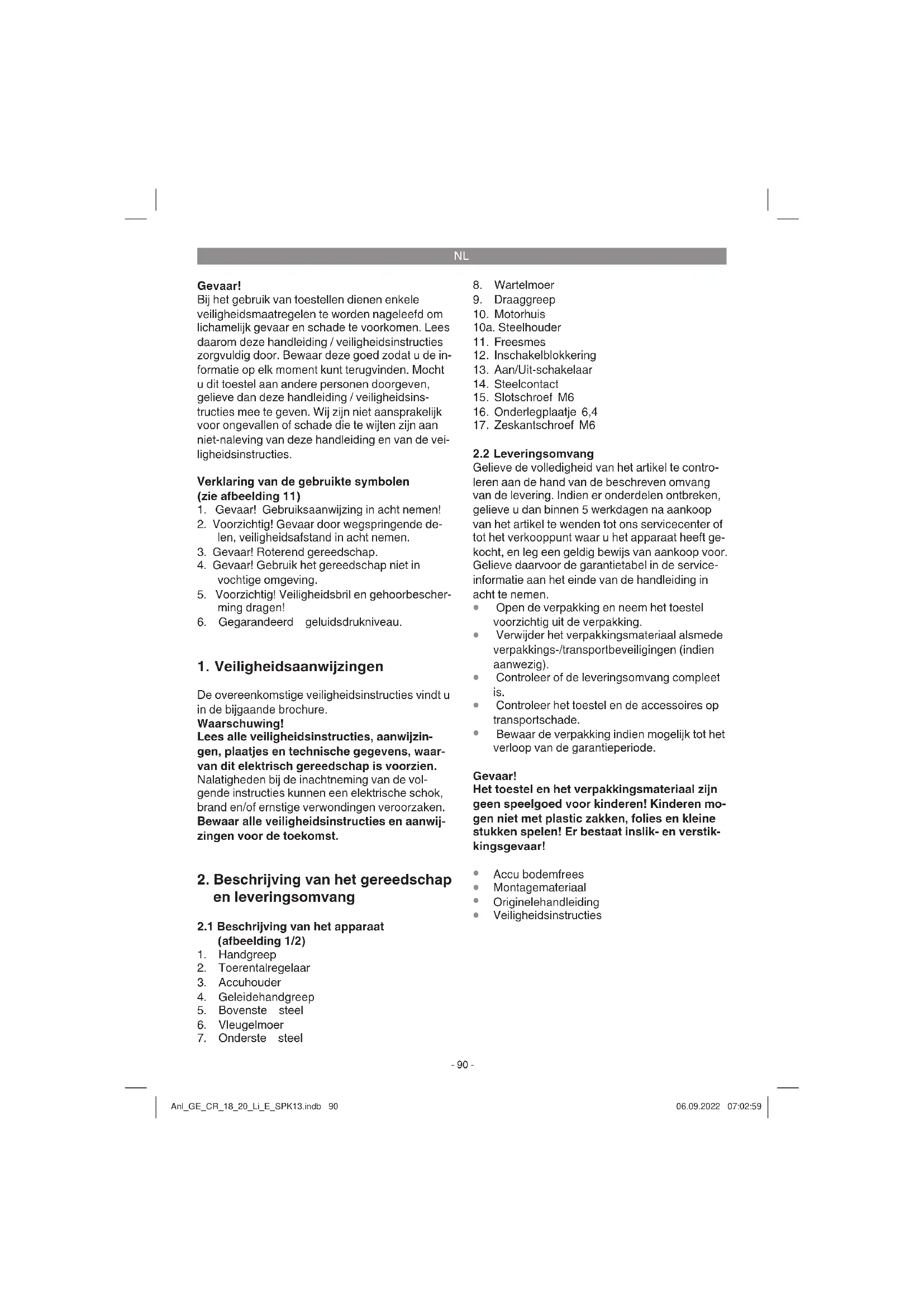 Gebruik voor het transport indien mogelijk de originele verpakking. Anl_GE_CR_18_20_Li_E_SPK13.indb 95Anl_GE_CR_18_20_Li_E_SPK13.indb 95 06.09.2022 07:03:0106.09.2022 07:03:01NL