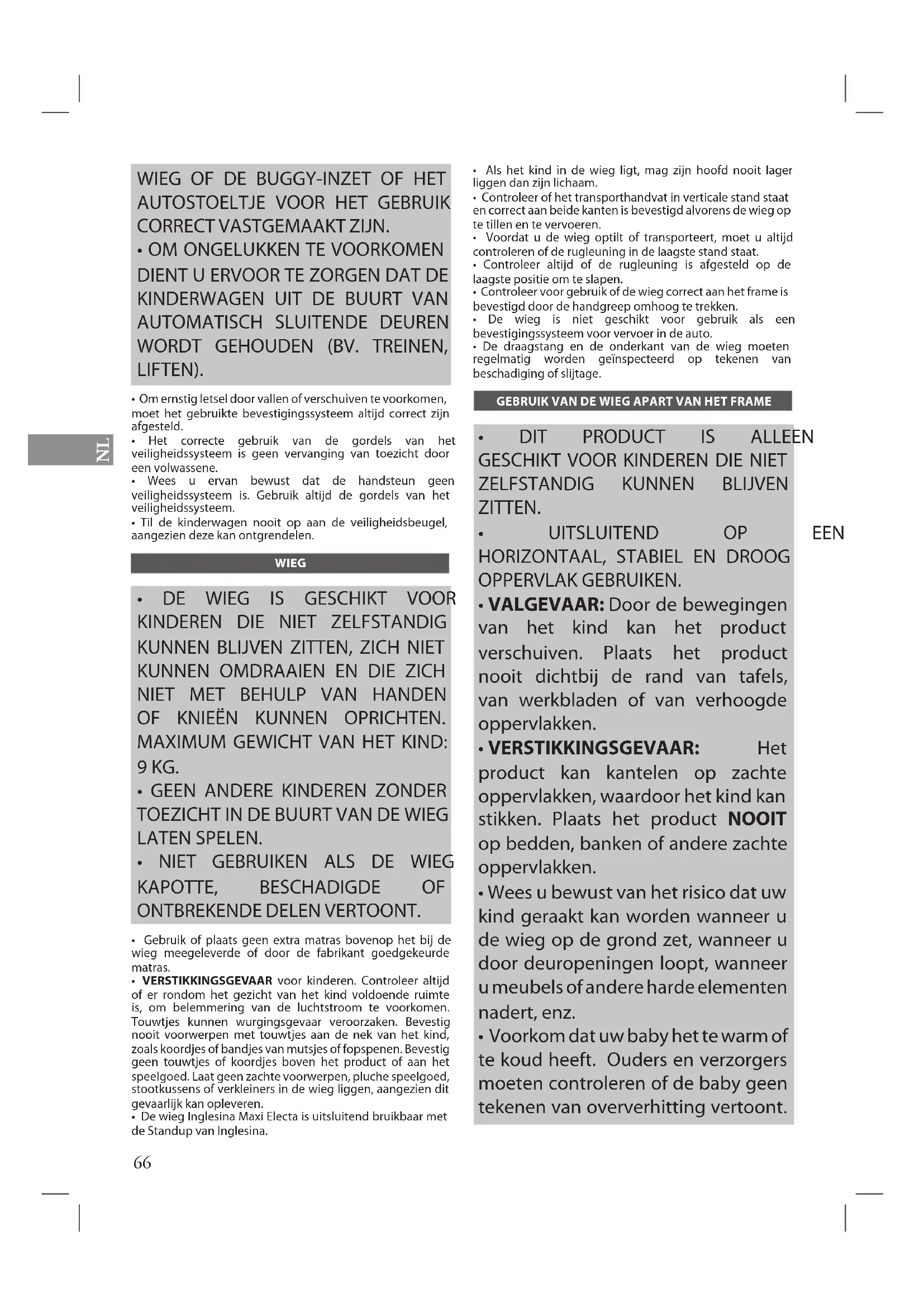 - Het Electa frame van Inglesina mag uitsluitend worden gebruikt met de overeenkomstige Electa kinderwagenzitting, de Electa Maxi wieg en de autostoeltjes Darwin Infant E Darwin Infant Recline. Raadpleeg in geval van twijfel de website inglesina.com of neem contact op met een erkende dealer of de klantenservice van Inglesina.