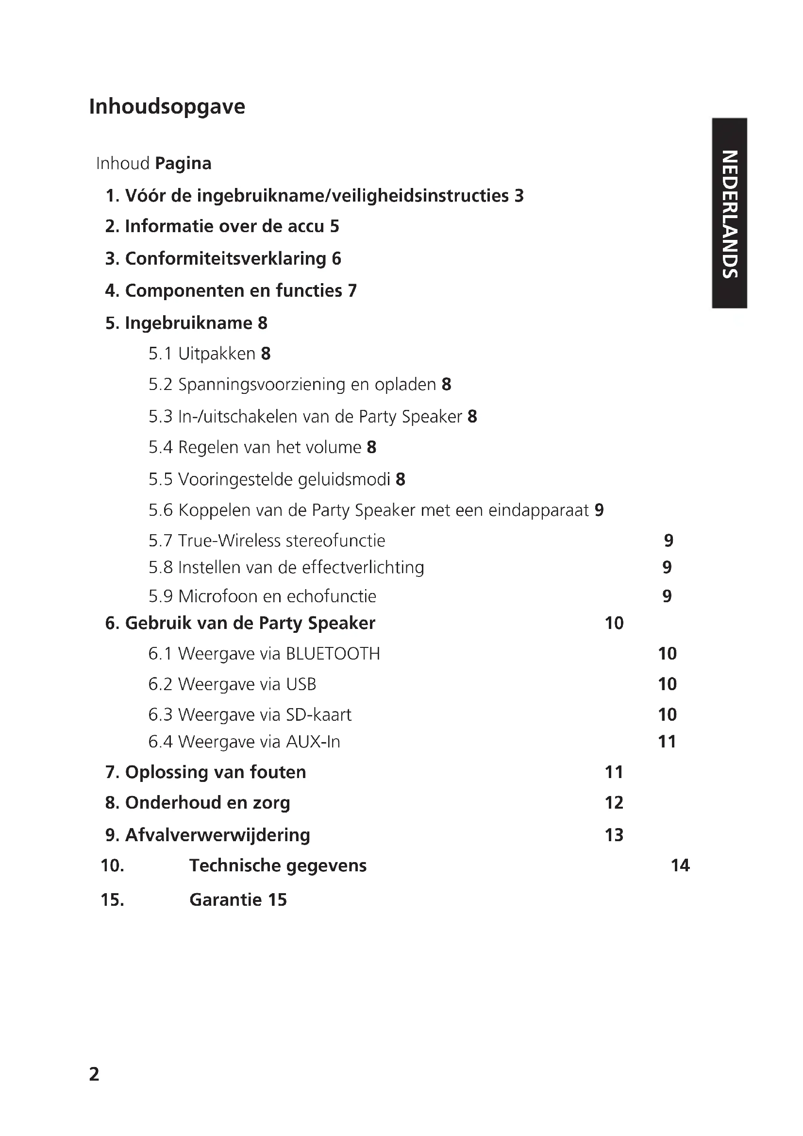 1. Vóór de ingebruikname/veiligheidsinstructies 3