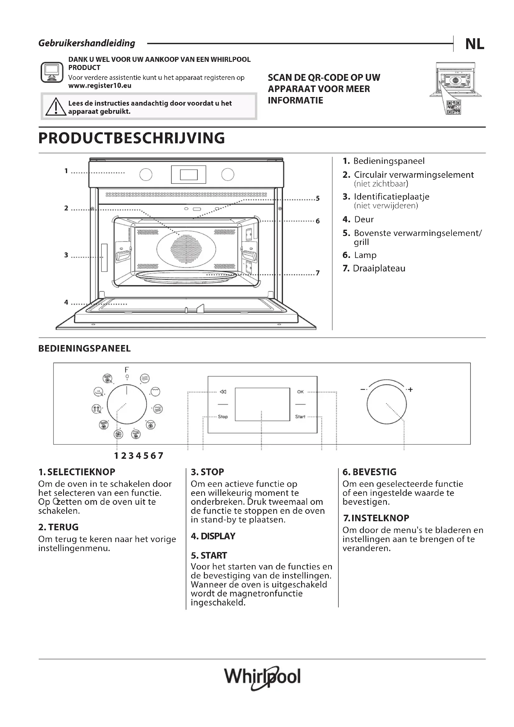 - Anders, contacteer onze Klantenservice (Het telefoonnummer staat in het garantieboekje). Wanneer u contact opneemt met de Klantenservice, gelieve de codes te vermelden die op het identicatieplaatje van het apparaat staan. ®/TM/© 2024 Whirlpool. Onder licentie geproduceerd.