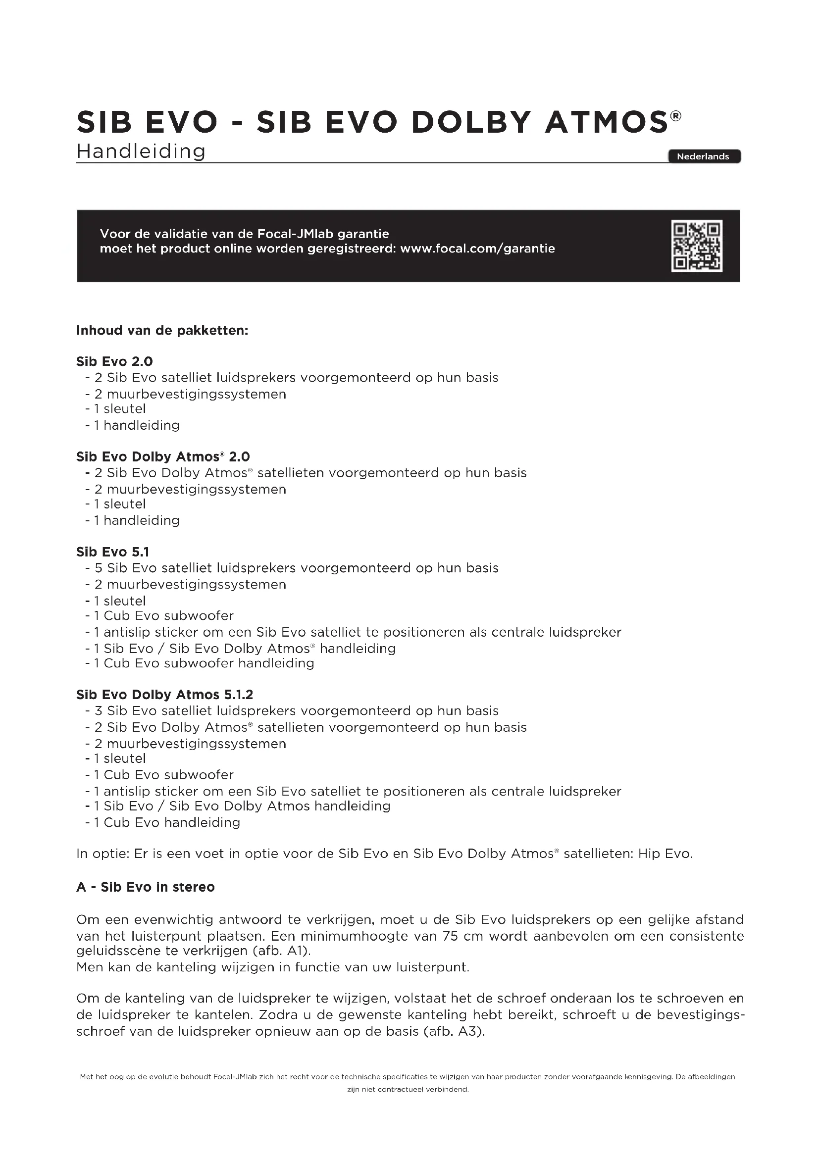GEBRUIKSAANWIJZING Sib Evo Pack 5.1 FOCAL