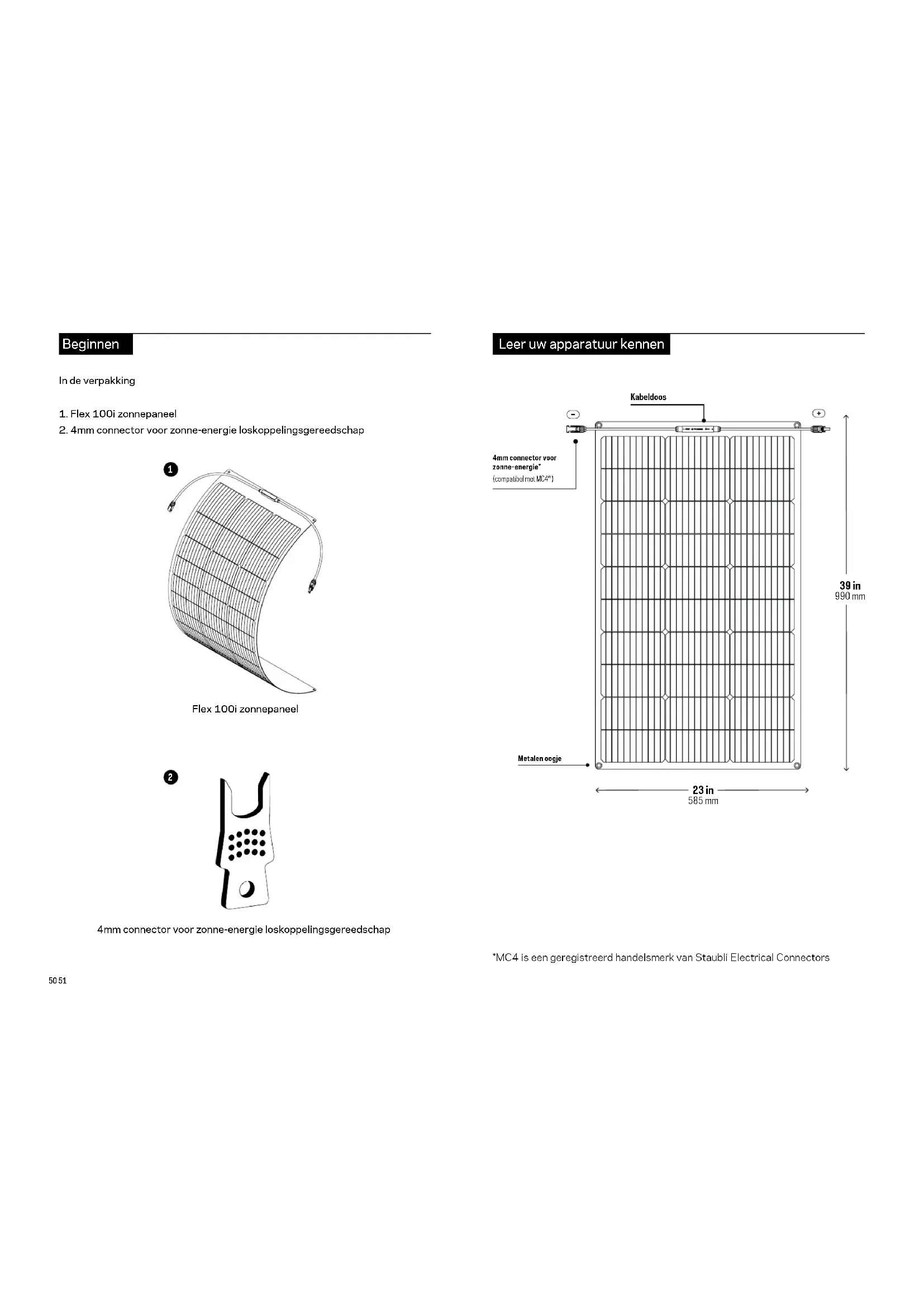 Beginnen Flex 100i zonnepaneel 4mm connector voor zonne-energie loskoppelingsgereedschap Leer uw apparatuur kennen *MC4is een geregistreerd handelsmerk van Staubli Electrical Connectors
