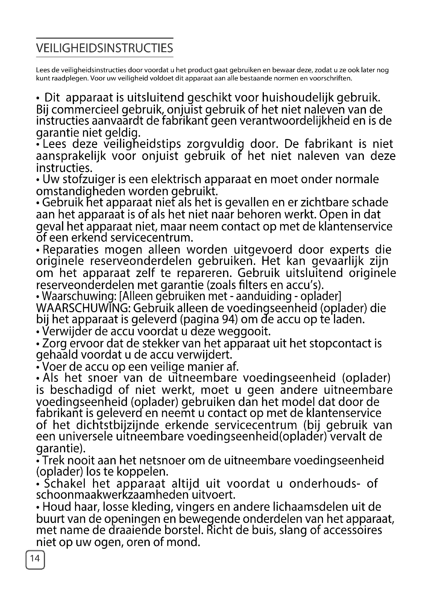 VEILIGHEIDSINSTRUCTIES VOOR DE ACCU’S