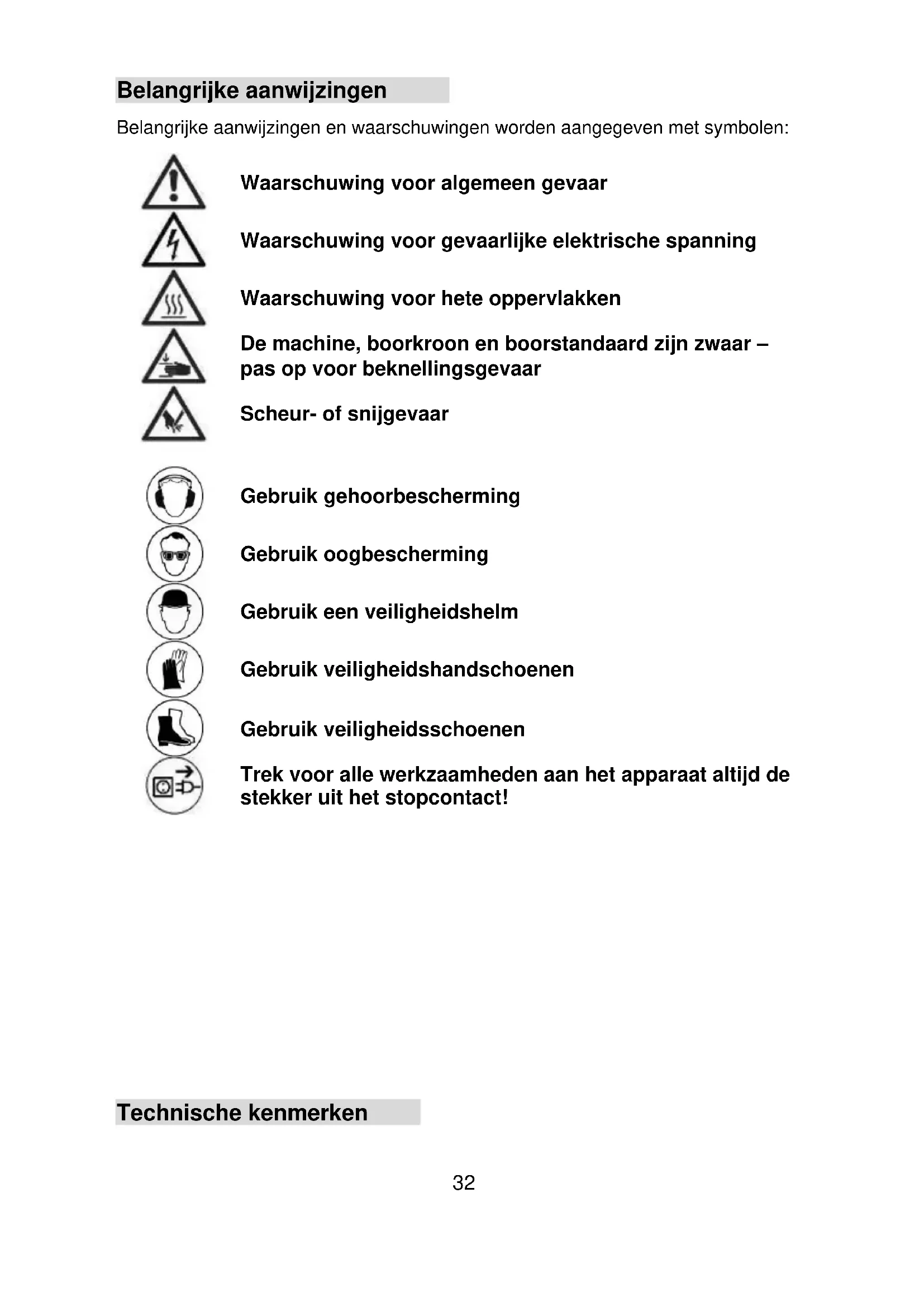 Voor het gebruik van de kernboormachine moeten de gebruiksaanwijzing en de bijbehorende veiligheids- instructies strikt worden opgevolgd!