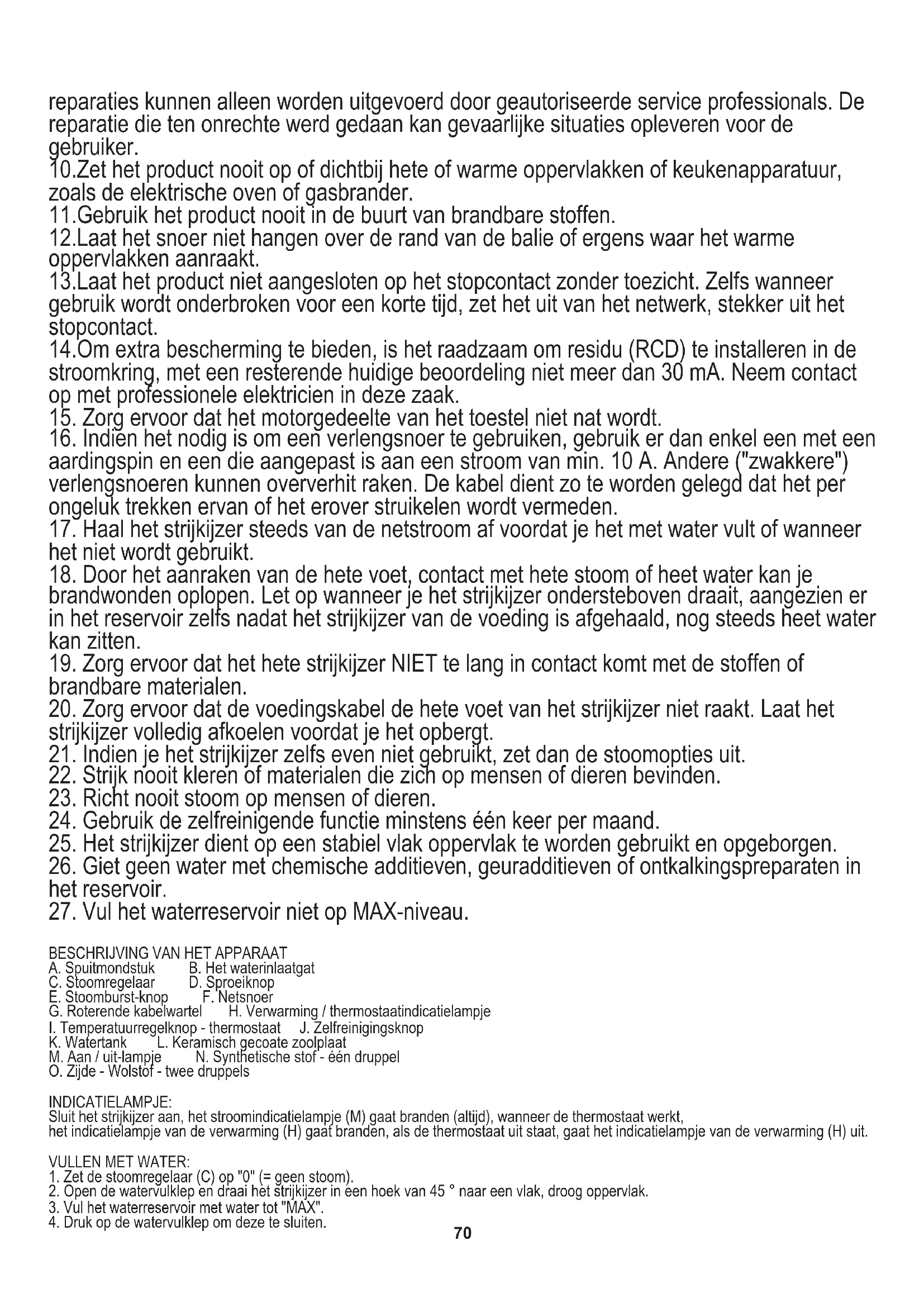 strijkijzer volledig afkoelen voordat je het opbergt. K. Watertank L. Keramisch gecoate zoolplaat O. Zijde - Wolstof - twee druppels VULLEN MET WATER: