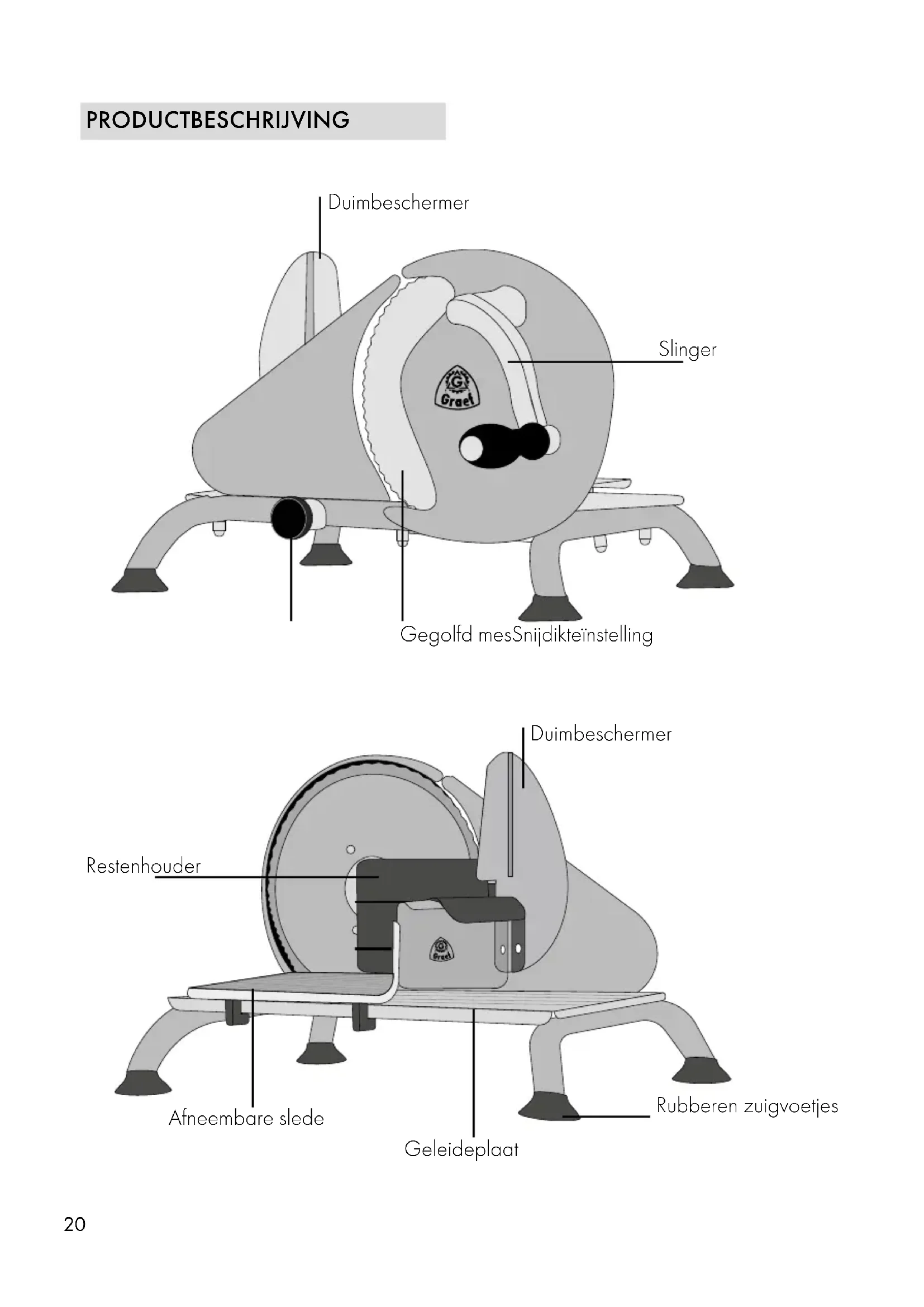 Rubberen zuigvoetjes VOORWOORD Geachte klant, met de aankoop van deze handsnijma- chine heeft u een goede keuze gemaakt. U hebt een erkend kwaliteitsproduct aan- gekocht. Wij danken voor uw aankoop en wensen u veel plezier met uw nieuwe Graef snij- machine.