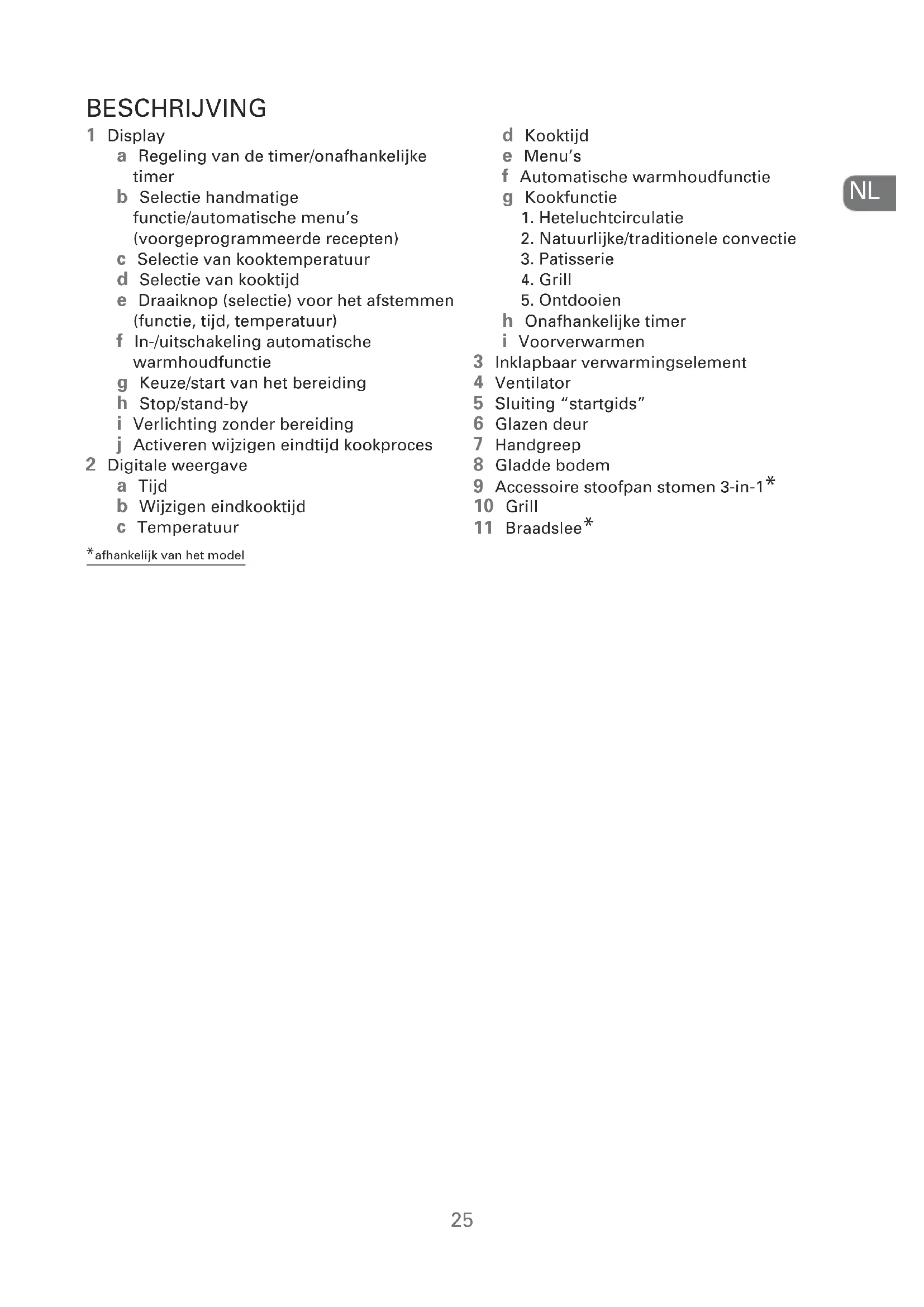 *afhankelijk van het model GEBRUIKSAANWIJZING Heteluchtcirculatie functie