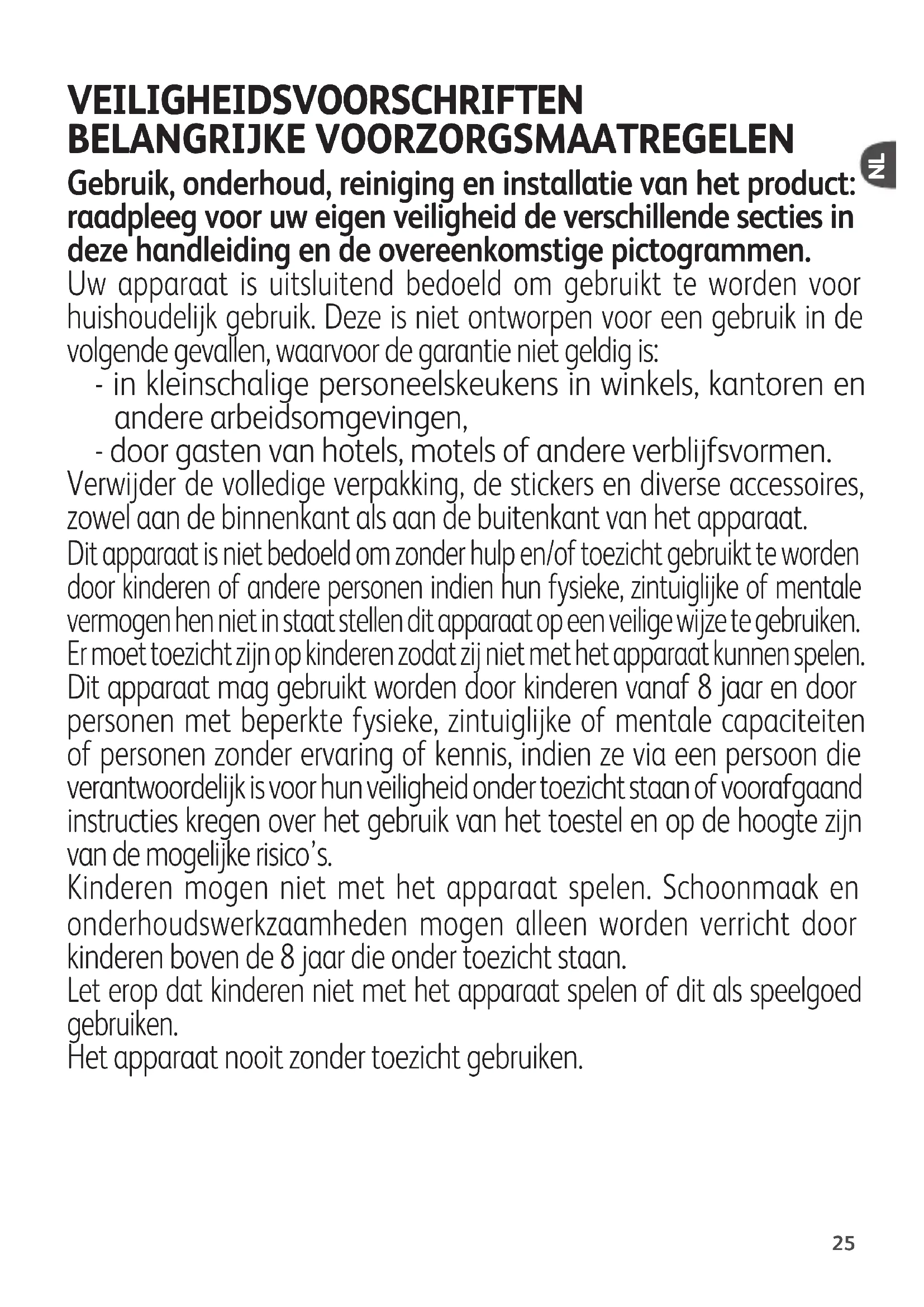 - Wij danken u voor de aankoop van dit apparaat, dat uitsluitend bestemd is voor huishoudelijk gebruik.