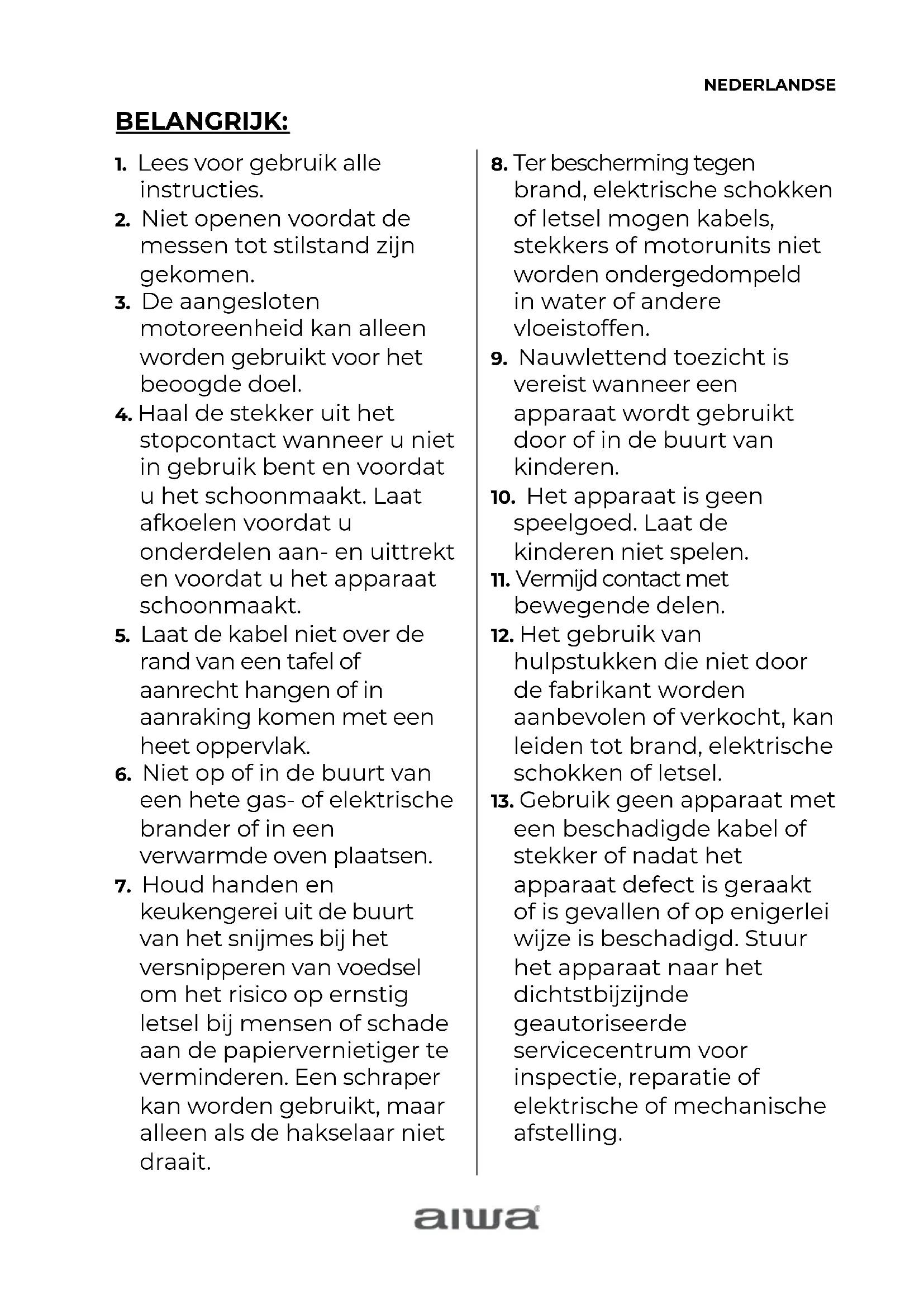 13. Gebruik geen apparaat met
