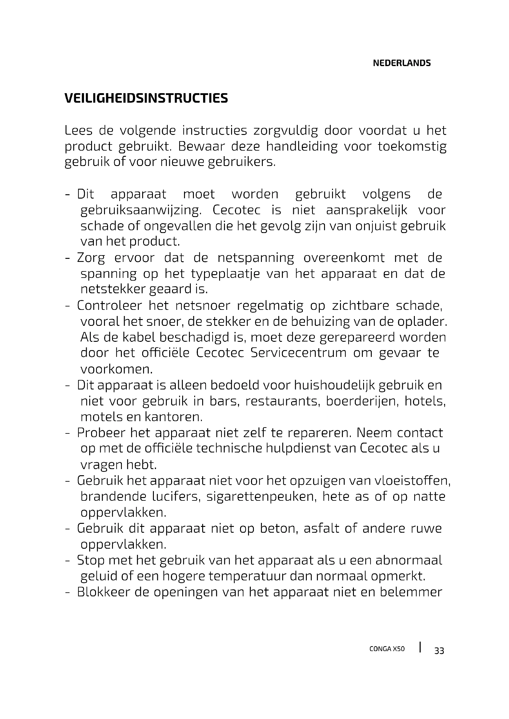 GEBRUIKSAANWIJZING Conga X50 CECOTEC