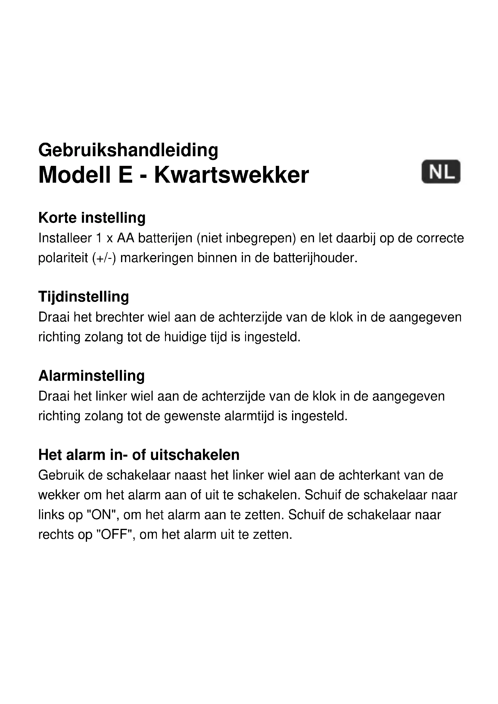 Modell E - Radiowekker Techno Line - Gratis gebruiksaanwijzing en handleiding
