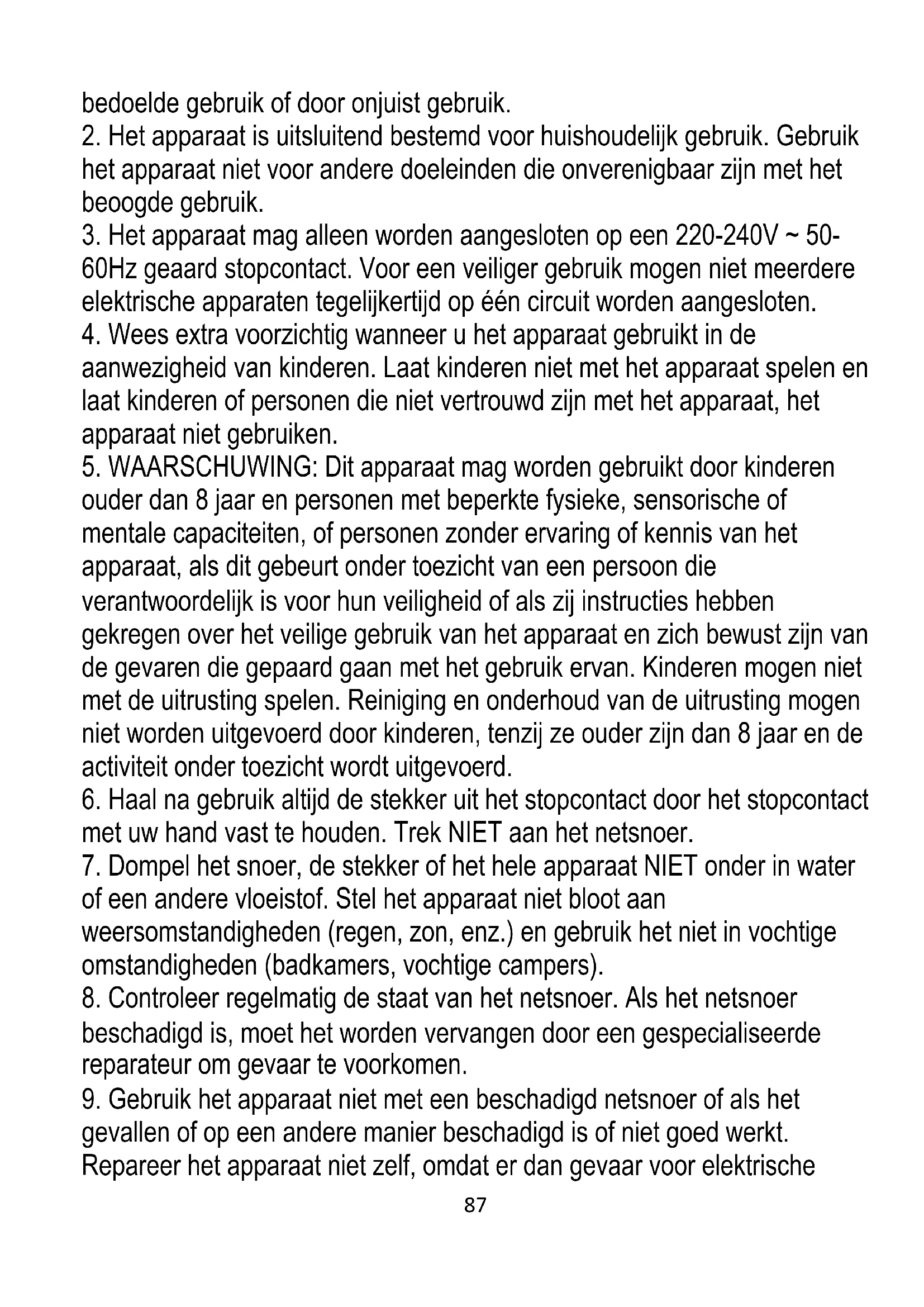 2. Het apparaat is uitsluitend bestemd voor huishoudelijk gebruik. Gebruik