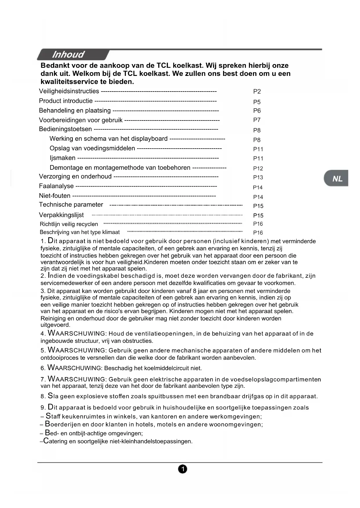 dankt voor de aankoop van de TCL koelkast. Wij spreken hierbij onze dank uit. Welkom bij de TCL koelkast. We zullen ons best doen om u een kwaliteitsservice te bieden.