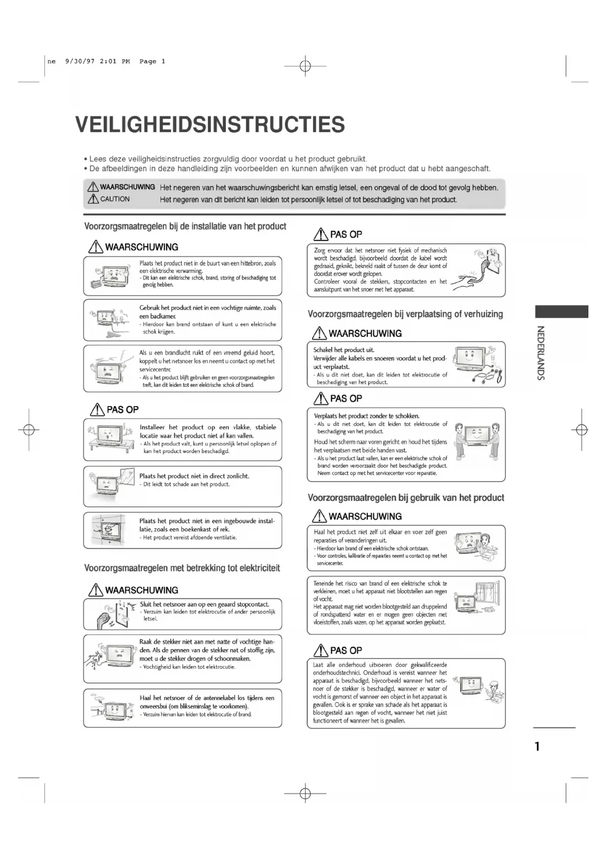 NEDERLANDS ?Leesdeze veiligheidsinstructies zorgvuldig doorvoordatuhet product gebruikt. ?De afbeeldingen indeze handleiding zijn voorbeeldenenkunnen afwijken vanhet product datuhebt aangeschaft. Hetnegerenvanhet waarschuwingsbericht kan ernstig letsel, een ongeval ofdedoodtot gevolg hebben.Hetnegerenvanditberichtkanleidentot persoonlijk letseloftot beschadiging vanhet product. Voorzorgsmaatregelen bij