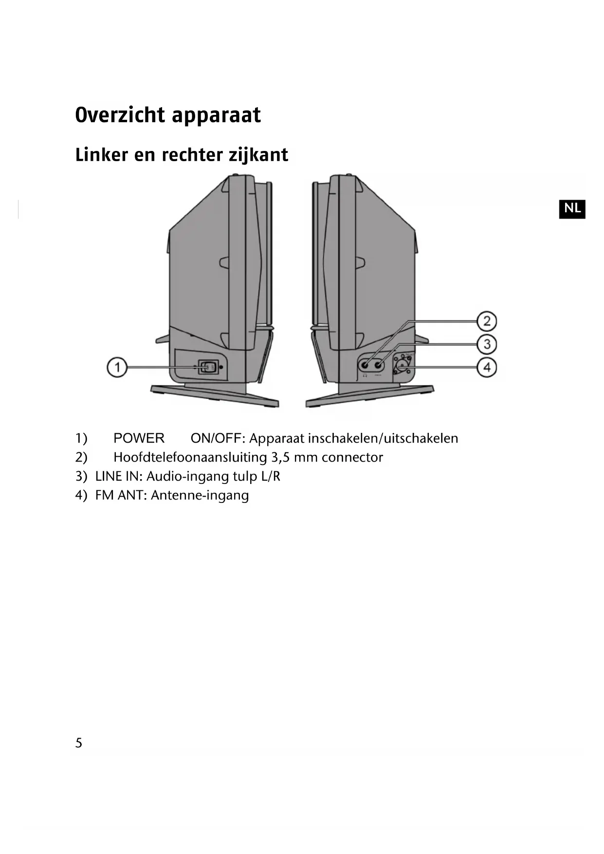 Overzicht apparaat Linker en rechter zijkant