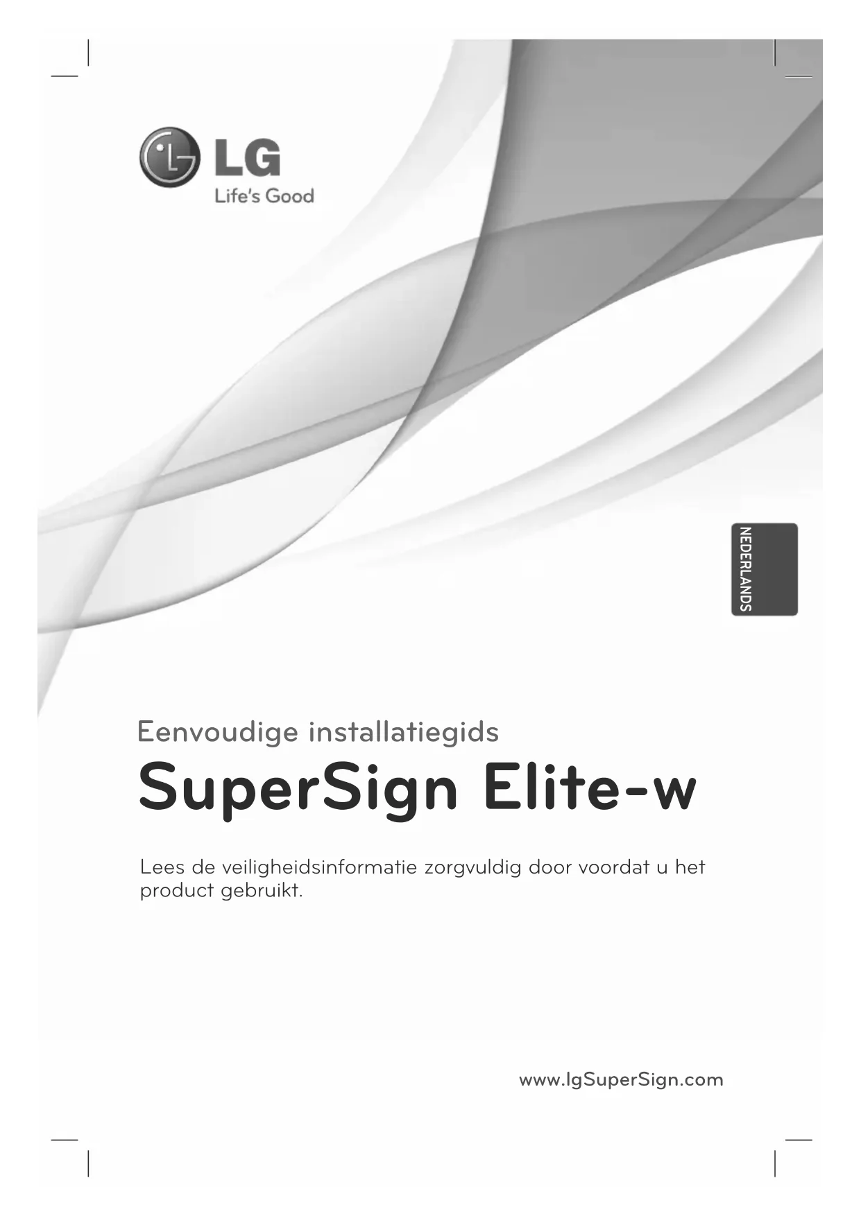 accedere all'unità CD/DVD-ROM: \SuperSign \SuperSign_Software \Application \SuperSign_Editor \ ed eseguire SuperSignEditor_setup.exe manualmente. Notawww.lgSuperSign.com Eenvoudige installatiegids SuperSign Elite-w Lees de veiligheidsinformatie zorgvuldig door voordat u het product gebruikt. NEDERLANDS2 NEDERLANDS De SuperSign Elite-w-server instellen De SuperSign Elite-w-server installeren Plaats de CD/DVD, inclusief het product, in uw PC om het installatieprogramma te starten. Klik op SuperSign Elite-w Server om het programma te installeren.