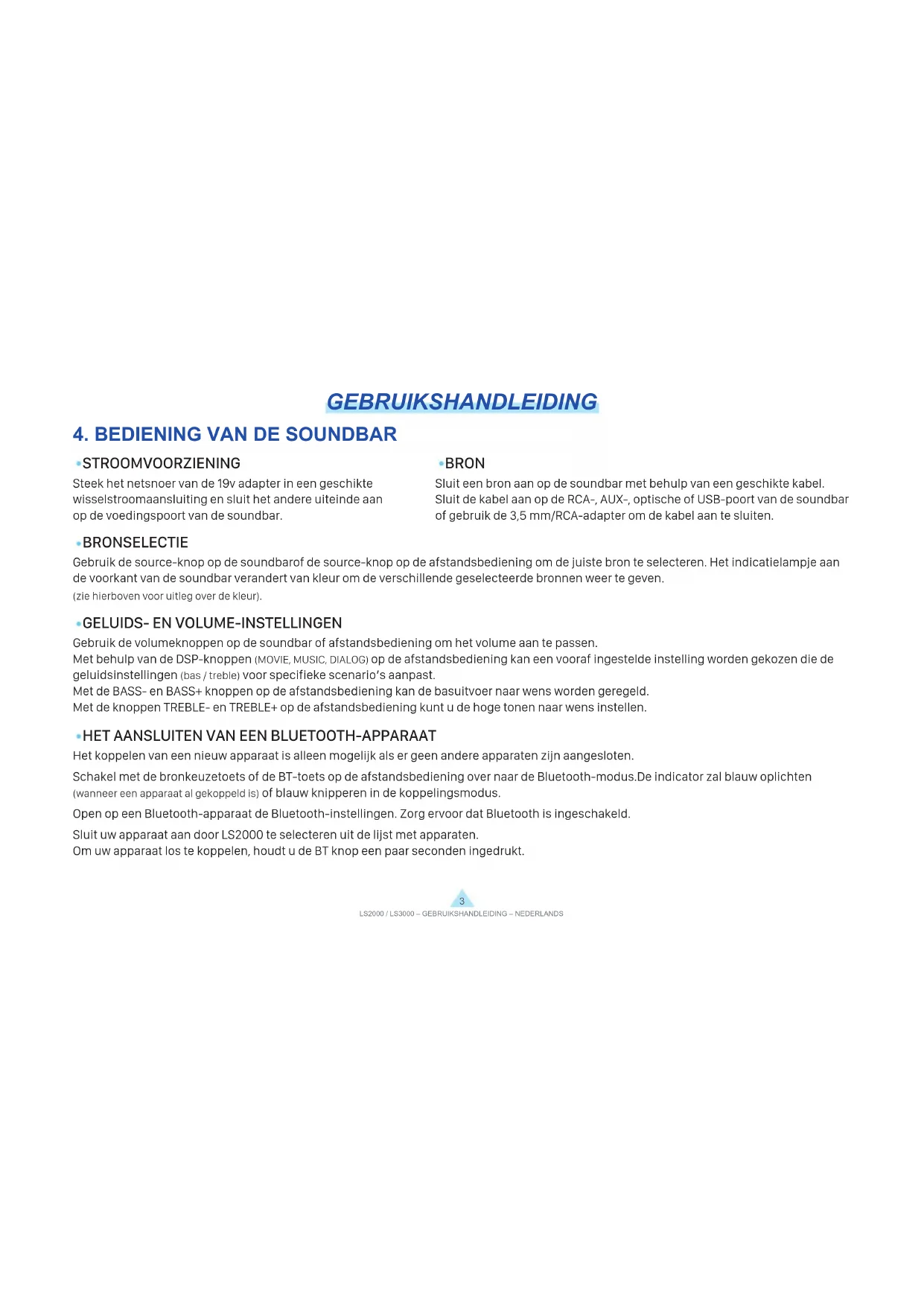 5. AANSLUITEN VAN DE LS3000 SUBWOOFER OP DE SOUNDBAR
