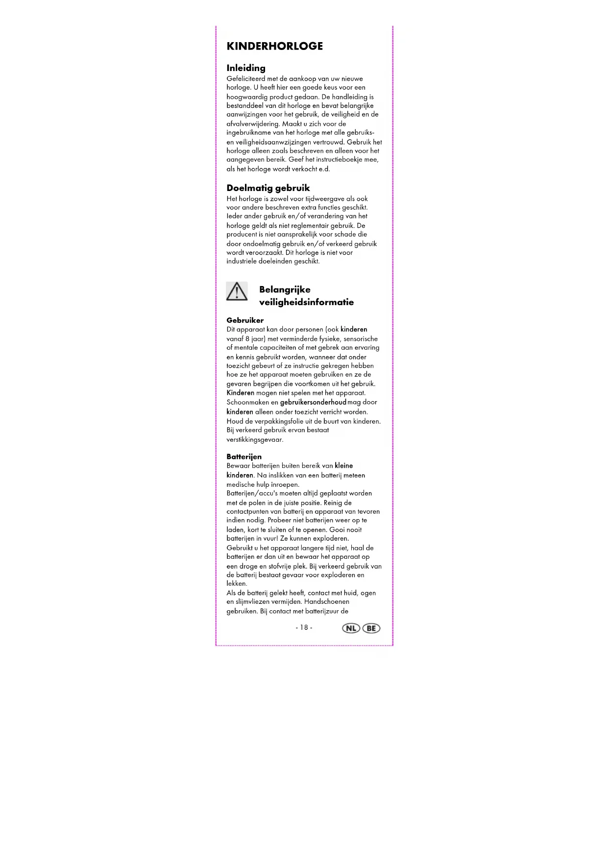 KINDERHORLOGE Gebruiksaanwijzing en veiligheidstips