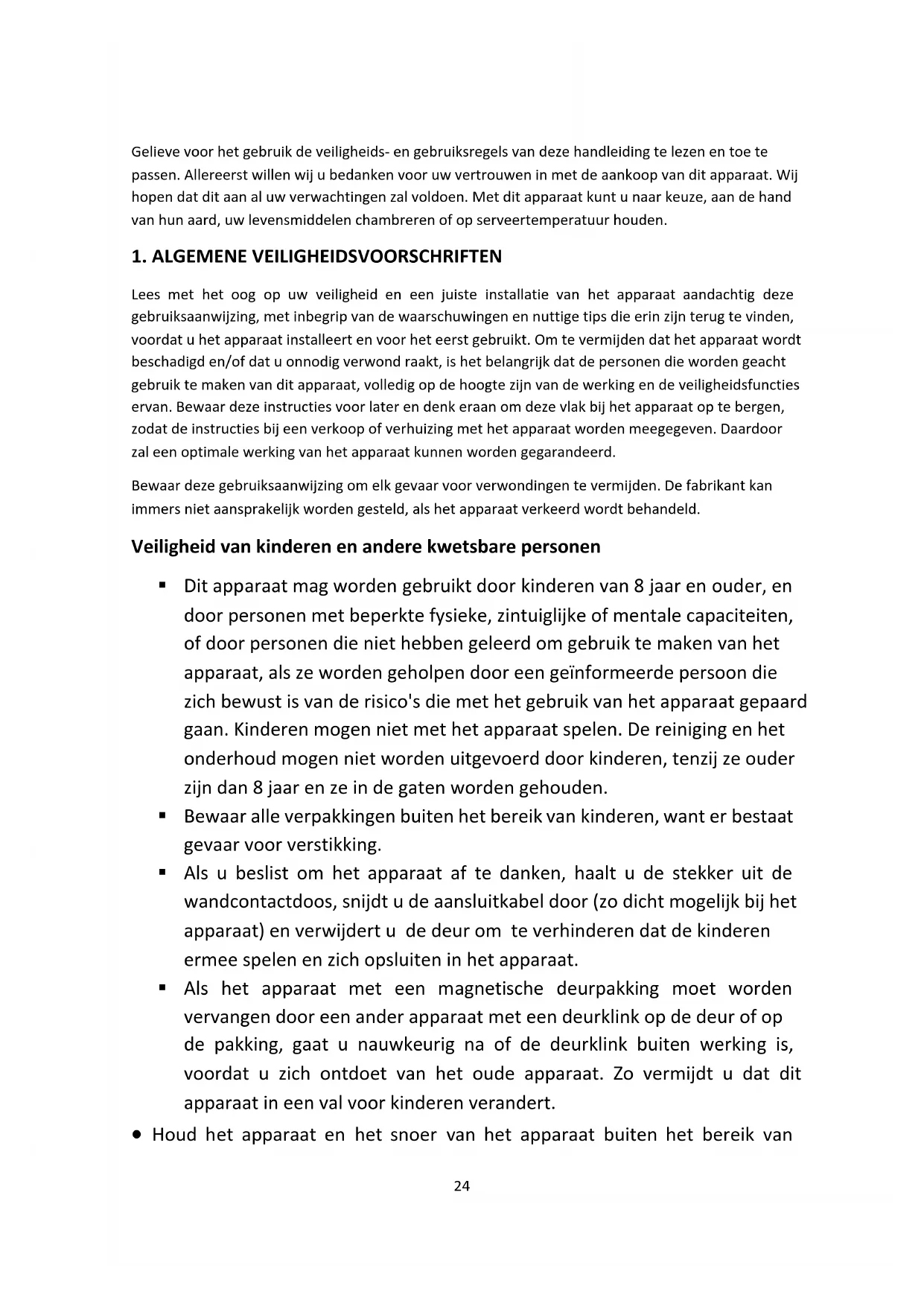 - Dit apparaat mag worden gebruikt door kinderen van 8 jaar en ouder, en door personen met beperkte fysieke, zintuiglijke of mentale capaciteiten, of door personen die niet hebben geleerd om gebruik te maken van het apparaat, als ze worden geholpen door een geïnformeerde persoon die zich bewust is van de risico's die met het gebruik van het apparaat gepaard gaan. Kinderen mogen niet met het apparaat spelen. De reiniging en het onderhoud mogen niet worden uitgevoerd door kinderen, tenzij ze ouder zijn dan 8 jaar en ze in de gaten worden gehouden.