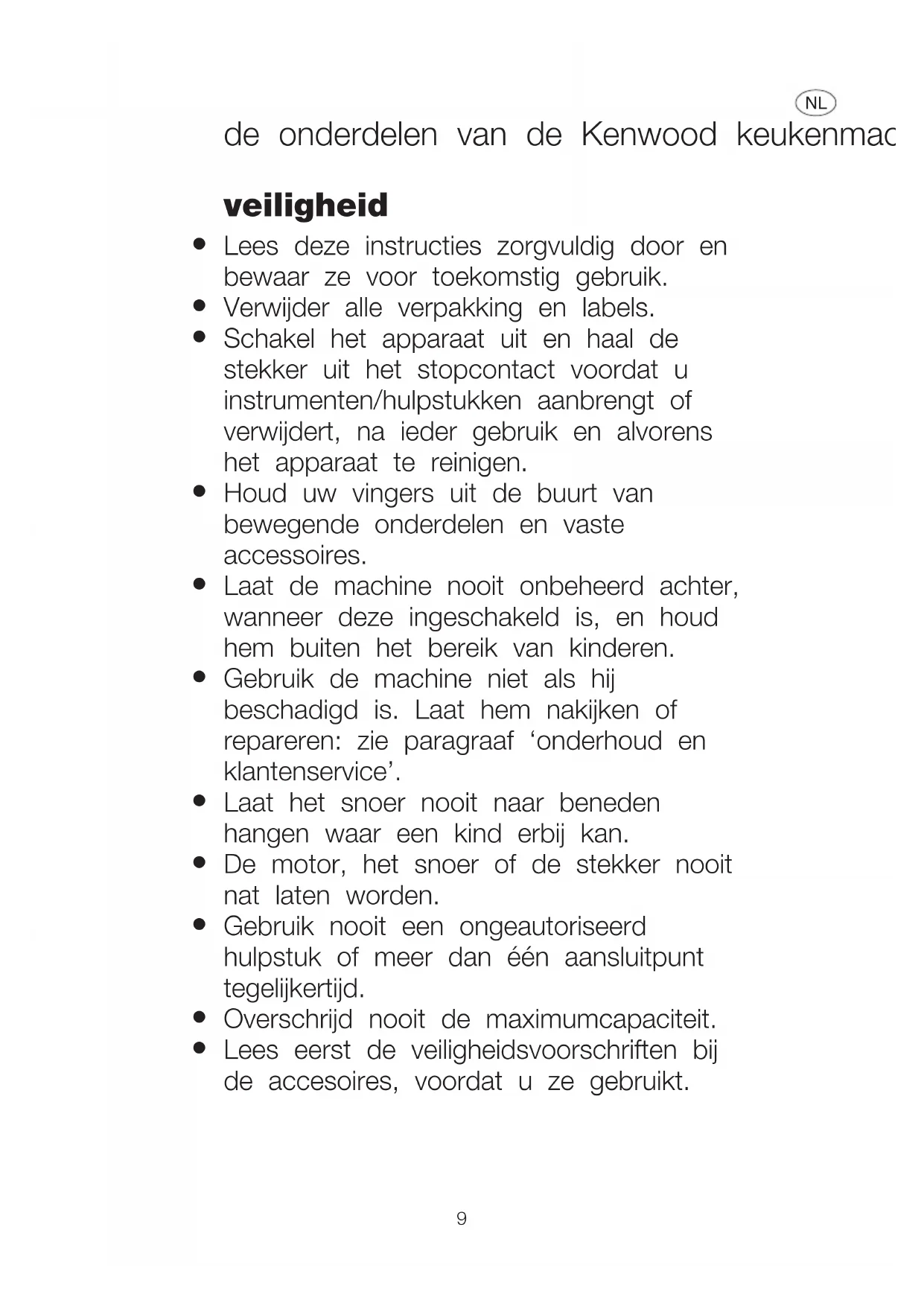 Gebruik het apparaat alleen voor het huishoudelijke gebruik waarvoor het is bedoeld. Kenwood kan niet aansprakelijk worden gesteld in het geval dat het apparaat niet correct is gebruikt, of waar deze instructies niet worden opgevolgd. 10voordat u de stekker in het stopcontact steekt