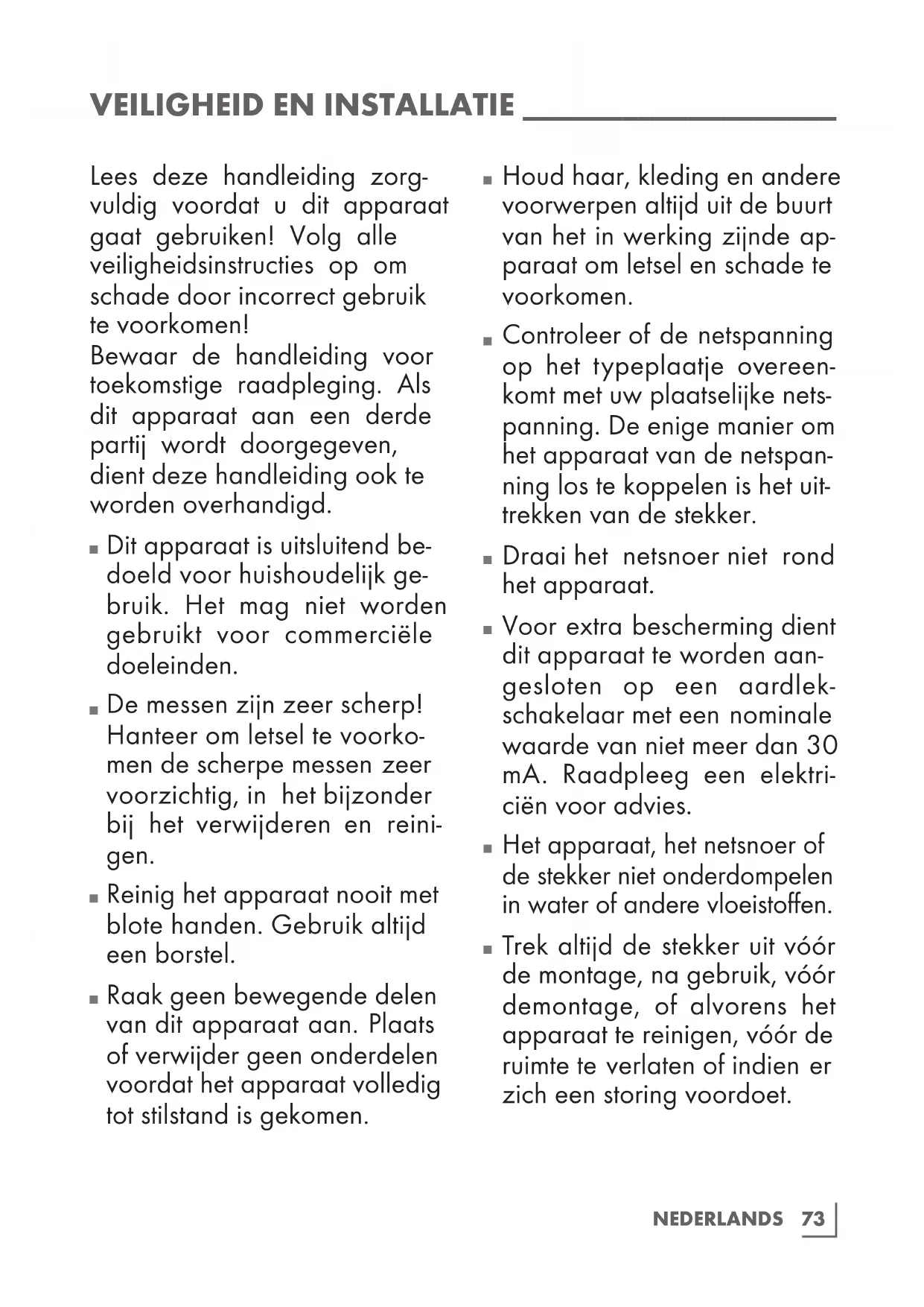 De messen zijn zeer scherp! Hanteer om letsel te voorko- men de scherpe messen zeer voorzichtig, in het bijzonder bij het verwijderen en reini- gen.