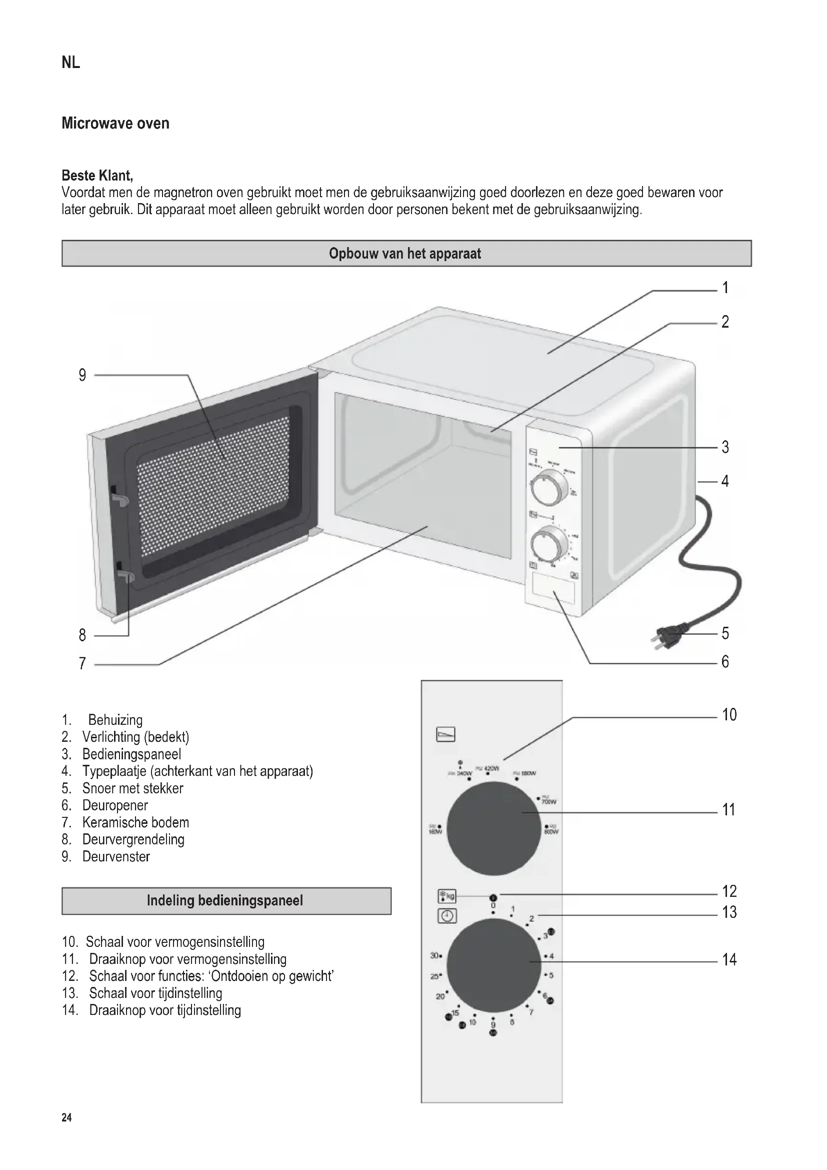 142 x 208 mm Veiligheidsaanwijzingen Belangrijke veiligheidsaanwijzingen De volgende aanwijzingen alstublieft goed doorlezen en deze handleiding bewaren voor toekomstige raadpleging. Aansluiting Deze combimagnetron mag alleen worden aangesloten op een volgens de voorschriften geïnstalleerd geaard stopcontact. Zorg ervoor dat de netspanning overeenkomt met de spanning aangegeven op het typeplaatje. Dit product komt overeen met de richtlijnen aangegeven op het CE label. Plaatsen van het apparaat ∙ Plaats de combimagnetron altijd op een stabiele en vlakke, hittebestendige ondergrond en zorg ervoor dat deze beschermd is tegen hitte en vochtigheid. ∙ Gebruik het apparaat niet buiten. ∙ De poten aan de onderkant van het apparaat mogen niet verwijderd worden. ∙ Zorg voor voldoende ventilatie. Plaats nooit voorwerpen op het apparaat en zorg ervoor dat er voldoende ruimte aanwezig is tussen het apparaat, de muur en andere voorwerpen: Zijkanten: 7.5 cm Achterkant: 7.5 cm Bovenkant: 30.0 cm Het apparaat mag nooit in een kast geplaatst worden. Wanneer men het apparaat neerzet, moet men ervoor zorgen dat het niet direct onder een keukenkastje of een ander voorwerp geplaatst wordt. Belangrijke aanwijzingen ∙ Attentie: Bepaalde voedselsoorten kunnen tot ontbranding overgaan. Laat dit apparaat tijdens gebruik nooit onbeheerd achter. ∙ De magnetronfunctie is alleen geschikt voor ontdooien, opwarmen en koken van voedsel. Waarschuwing: iedere poging om voedsel of kleding te drogen, het opwarmen van verwarmingskussen, huisslippers, sponzen, natte schoonmaakkleding enz. kunnen letsel, verbranding of brand veroorzaken. ∙ Geen verantwoordelijkheid wordt geaccepteerd wanneer er schade ontstaat tijdens onjuist gebruik van het apparaat of wanneer men de gebruiksaanwijzing niet volgt. ∙ Gebruik alleen geschikt keukengerei. Gebruik geen metalen houders voor het opwarmen van etenswaren of drankjes tijdens gebruik van de magnetronfunctie. Voor gedetailleerde informatie, alstublieft de paragraaf Gebruik altijd geschikt keukengerei raadplegen.26 142 x 208 mm ∙ Dit apparaat is niet geschikt voor gebruik met een externe tijdklok of een apart afstandsbedienings systeem. ∙ Dit apparaat mag gebruikt worden door kinderen (tenminste 8 jaar oud) en door personen met verminderde fysische, zintuiglijke of mentale bekwaamheden, of gebrek van ervaring en kennis, wanneer deze onder begeleiding zijn of instructies ontvangen hebben over het gebruik van dit apparaat en volledig de gevaren en veiligheidsvoorschriften begrijpen. ∙ Kinderen mogen niet met het apparaat spelen. ∙ Het reinigen en gebruikersonderhoud mag niet worden uitgevoerd door kinderen, tenzij zij ouder zijn dan 8 jaar en onder toezicht staan. ∙ Het apparaat en het snoer moeten altijd goed uit de buurt gehouden worden van kinderen jonger dan 8 jaar. ∙ Om elektrische schokken te voorkomen dit apparaat nooit met vloeistoffen schoonmaken of onderdompelen. ∙ Schakel het apparaat altijd uit na gebruik en verwijder de stekker uit het stopcontact: - voor het schoonmaken, - in geval van problemen. - na elk gebruik. ∙ Trek de stekker niet aan het snoer uit het stopcontact, maar aan de stekker zelf.