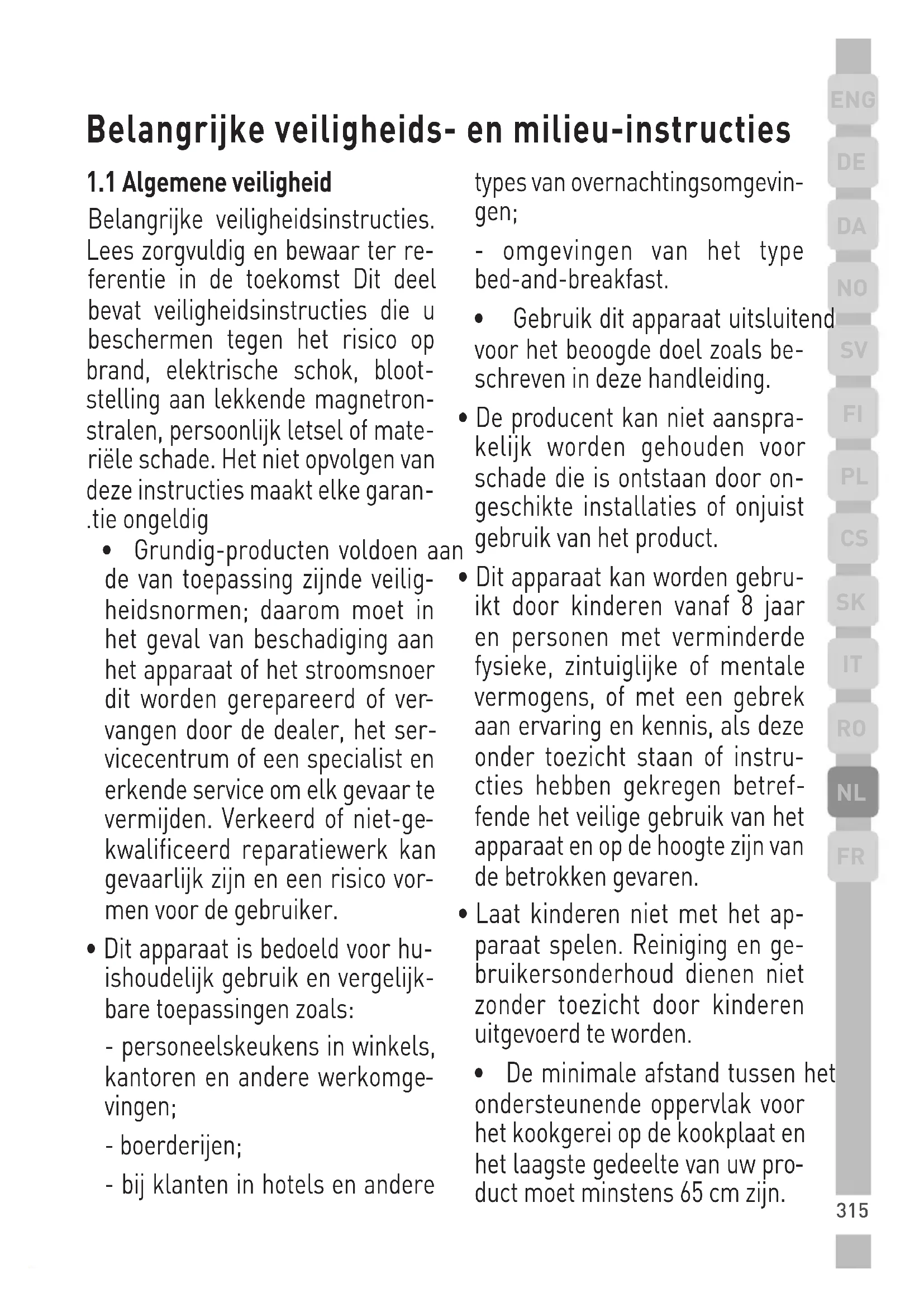 duct moet minstens 65 cm zijn. Belangrijke veiligheids- en milieu-instructies316